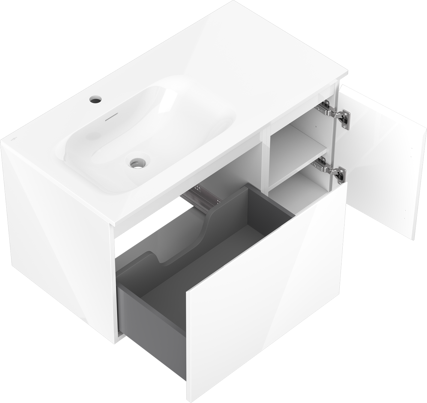 Výrez v zásuvke je navrhnutý tak, aby pojal sifón, ktorý je nevyhnutný v umývadlových inštaláciách. Vďaka tomu môže byť nábytok namontovaný plne funkčne, bez nutnosti vzdávať sa priestoru v zásuvke v prospech inštalácie.