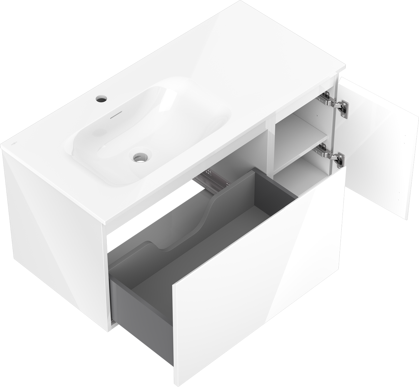 Výrez v zásuvke je navrhnutý tak, aby pojal sifón, ktorý je nevyhnutný v umývadlových inštaláciách. Vďaka tomu môže byť nábytok namontovaný plne funkčne, bez nutnosti vzdávať sa priestoru v zásuvke v prospech inštalácie.