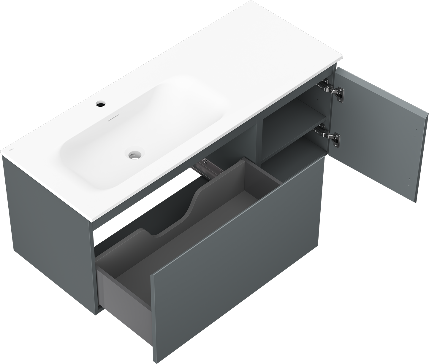 Výrez v zásuvke je navrhnutý tak, aby pojal sifón, ktorý je nevyhnutný v umývadlových inštaláciách. Vďaka tomu môže byť nábytok namontovaný plne funkčne, bez nutnosti vzdávať sa priestoru v zásuvke v prospech inštalácie.