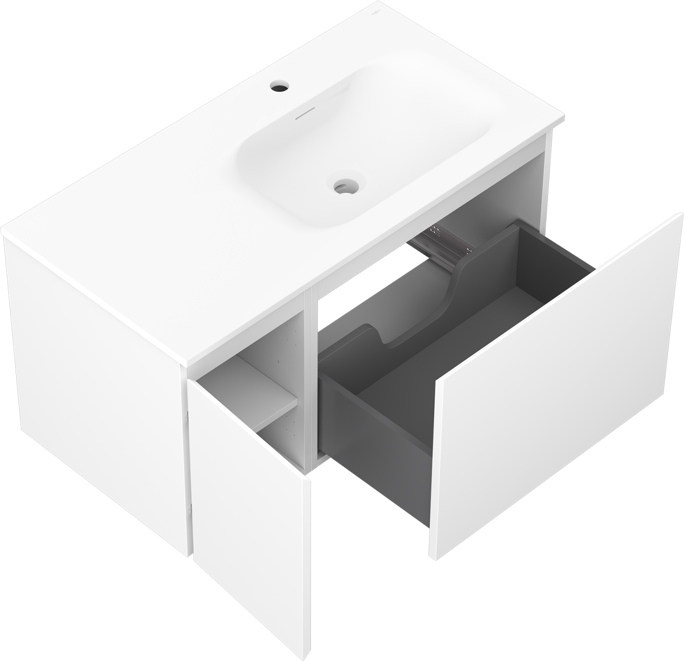 Výrez v zásuvke je navrhnutý tak, aby pojal sifón, ktorý je nevyhnutný v umývadlových inštaláciách. Vďaka tomu môže byť nábytok namontovaný plne funkčne, bez nutnosti vzdávať sa priestoru v zásuvke v prospech inštalácie.
