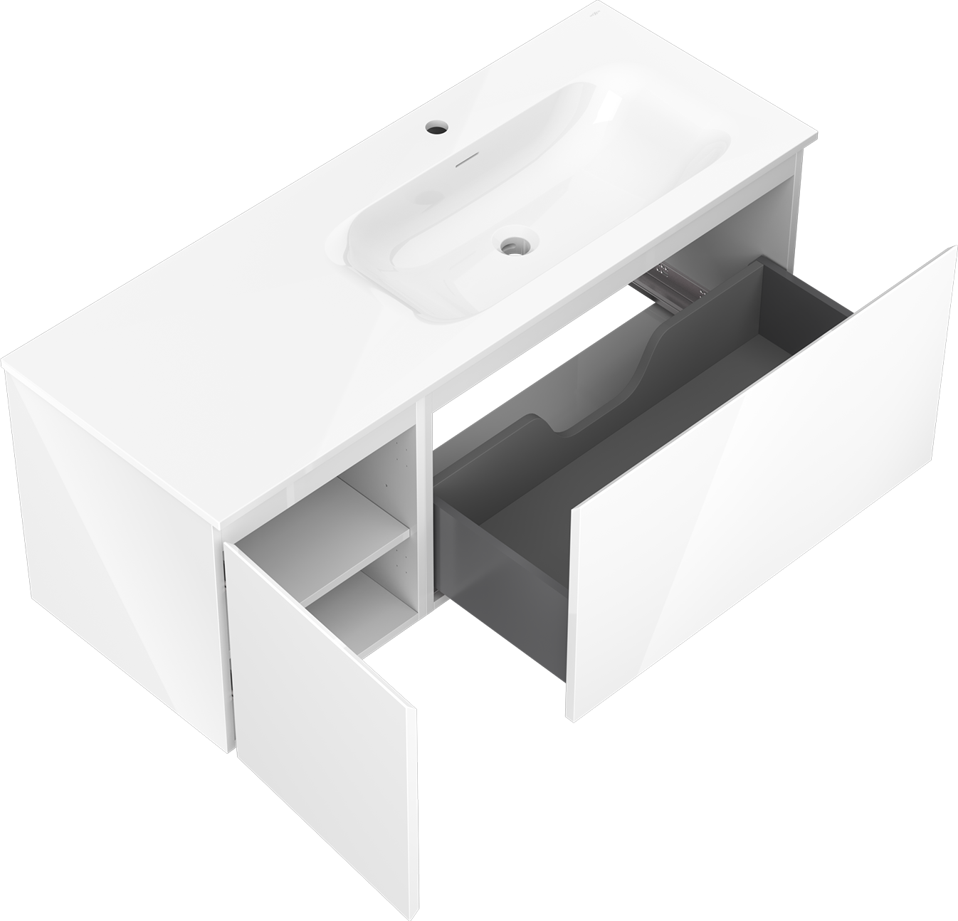 Výrez v zásuvke je navrhnutý tak, aby pojal sifón, ktorý je nevyhnutný v umývadlových inštaláciách. Vďaka tomu môže byť nábytok namontovaný plne funkčne, bez nutnosti vzdávať sa priestoru v zásuvke v prospech inštalácie.