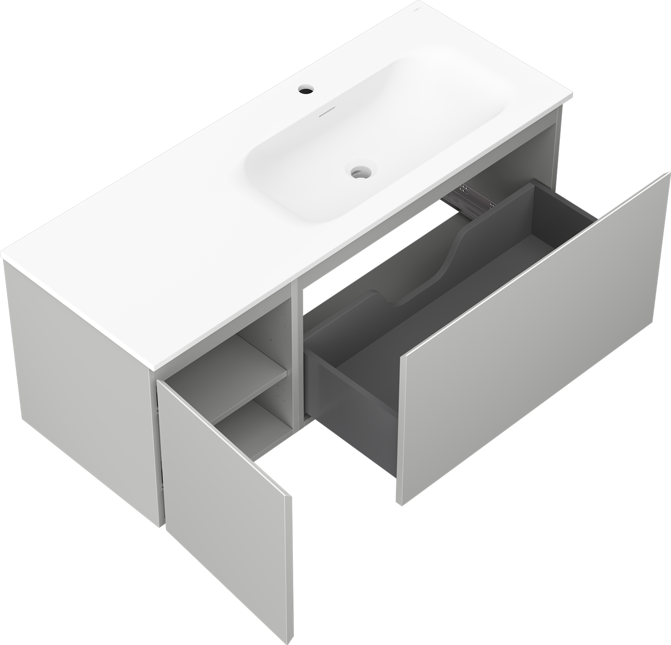 Výrez v zásuvke je navrhnutý tak, aby pojal sifón, ktorý je nevyhnutný v umývadlových inštaláciách. Vďaka tomu môže byť nábytok namontovaný plne funkčne, bez nutnosti vzdávať sa priestoru v zásuvke v prospech inštalácie.