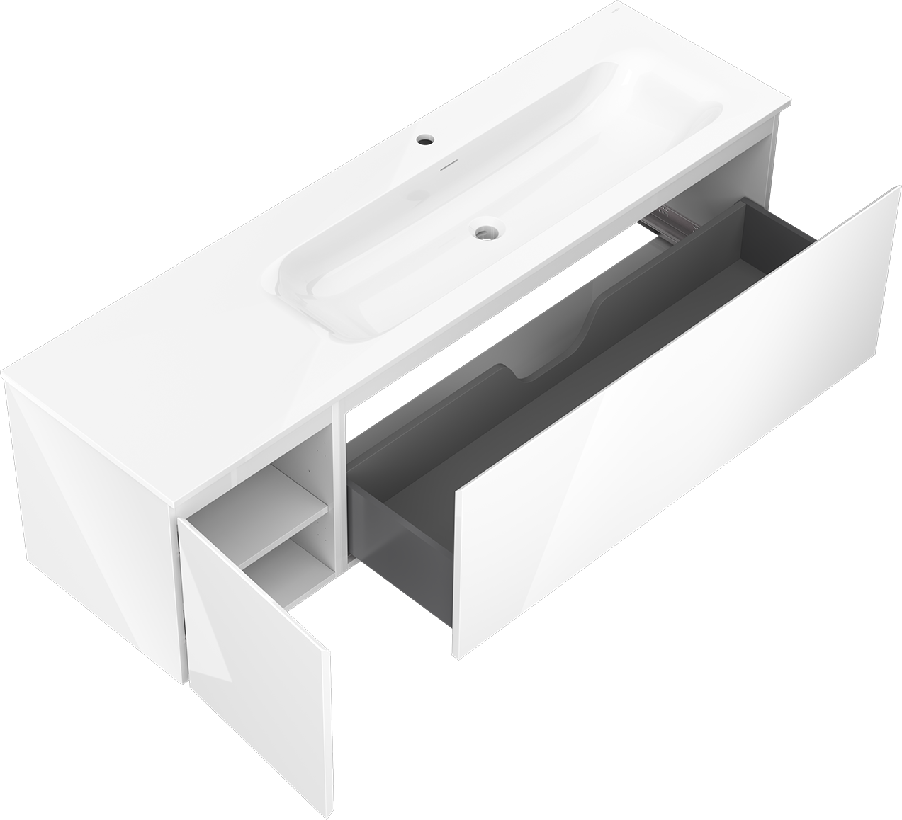 Výrez v zásuvke je navrhnutý tak, aby pojal sifón, ktorý je nevyhnutný v umývadlových inštaláciách. Vďaka tomu môže byť nábytok namontovaný plne funkčne, bez nutnosti vzdávať sa priestoru v zásuvke v prospech inštalácie.