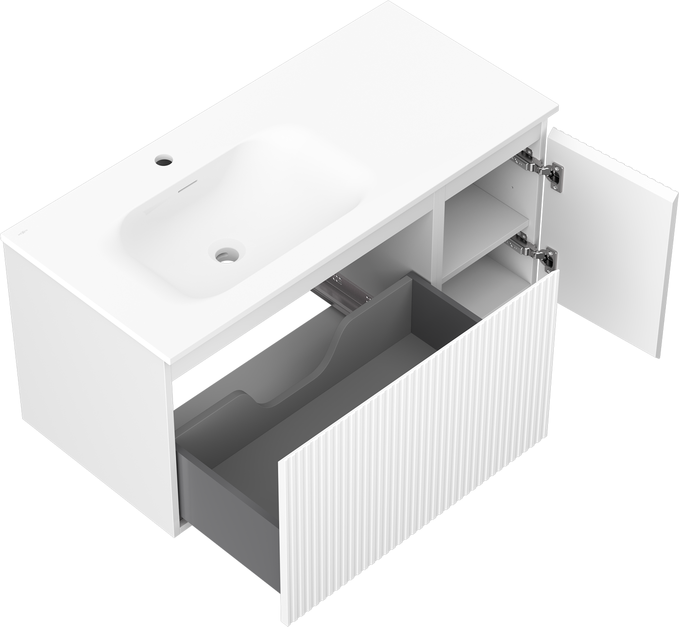 Výrez v zásuvke je navrhnutý tak, aby pojal sifón, ktorý je nevyhnutný v umývadlových inštaláciách. Vďaka tomu môže byť nábytok namontovaný plne funkčne, bez nutnosti vzdávať sa priestoru v zásuvke v prospech inštalácie.