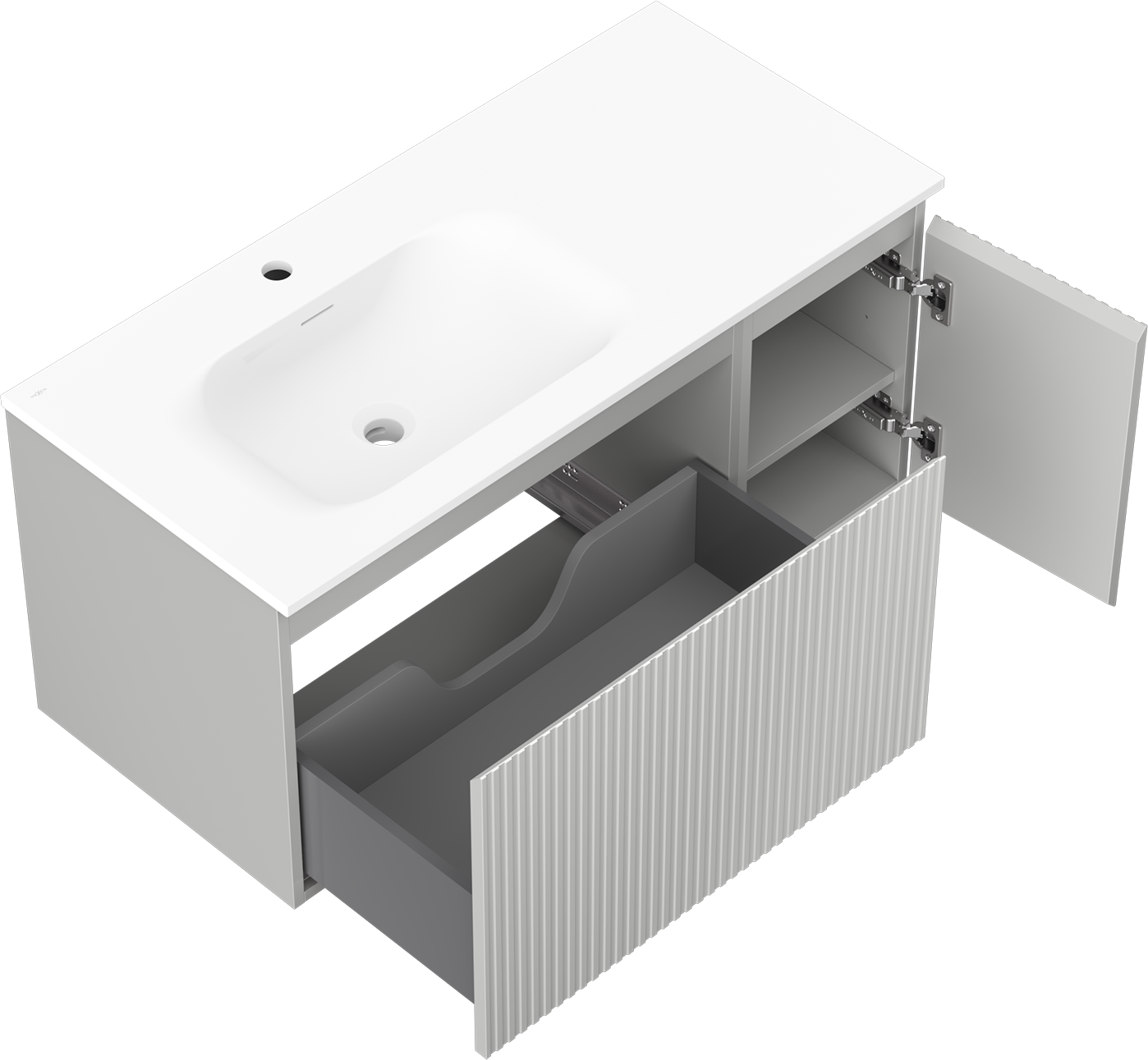 Výrez v zásuvke je navrhnutý tak, aby pojal sifón, ktorý je nevyhnutný v umývadlových inštaláciách. Vďaka tomu môže byť nábytok namontovaný plne funkčne, bez nutnosti vzdávať sa priestoru v zásuvke v prospech inštalácie.