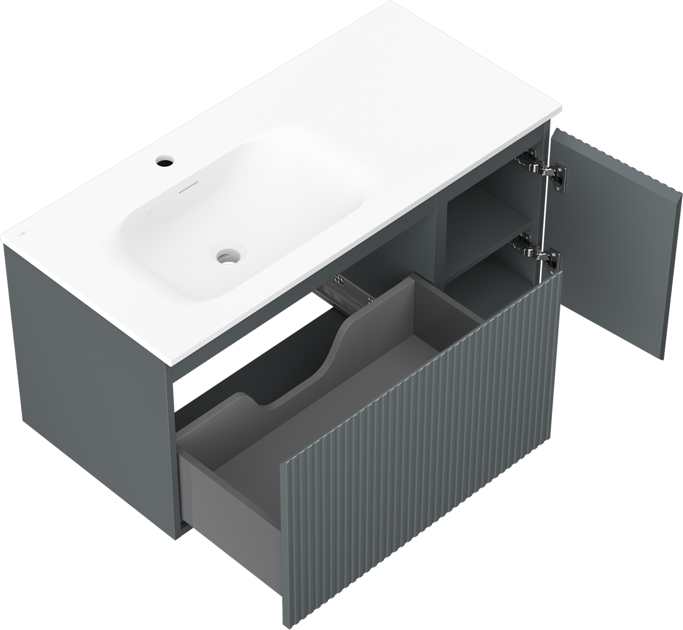 Výrez v zásuvke je navrhnutý tak, aby pojal sifón, ktorý je nevyhnutný v umývadlových inštaláciách. Vďaka tomu môže byť nábytok namontovaný plne funkčne, bez nutnosti vzdávať sa priestoru v zásuvke v prospech inštalácie.