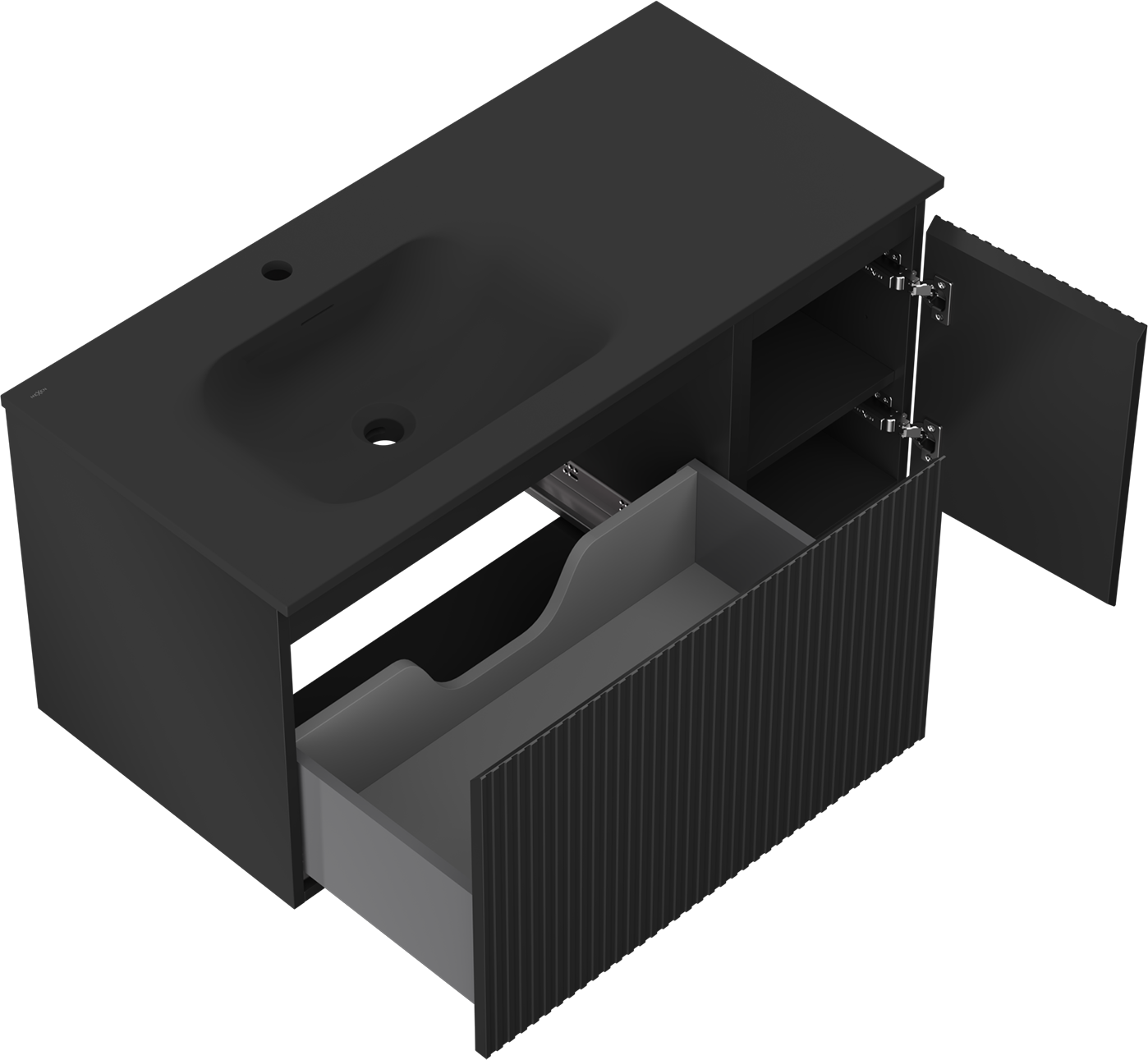 Výrez v zásuvke je navrhnutý tak, aby pojal sifón, ktorý je nevyhnutný v umývadlových inštaláciách. Vďaka tomu môže byť nábytok namontovaný plne funkčne, bez nutnosti vzdávať sa priestoru v zásuvke v prospech inštalácie.