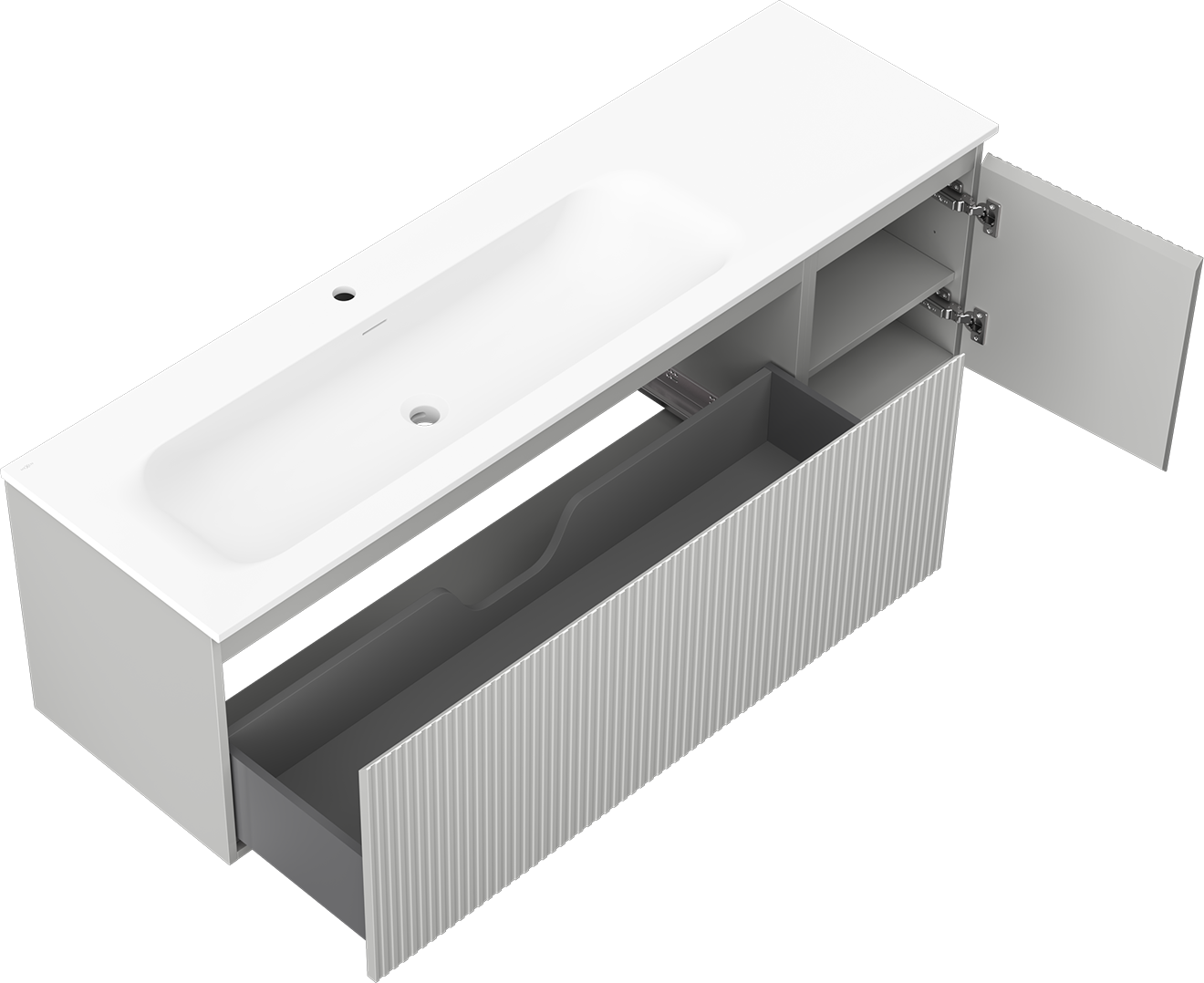 Výrez v zásuvke je navrhnutý tak, aby pojal sifón, ktorý je nevyhnutný v umývadlových inštaláciách. Vďaka tomu môže byť nábytok namontovaný plne funkčne, bez nutnosti vzdávať sa priestoru v zásuvke v prospech inštalácie.