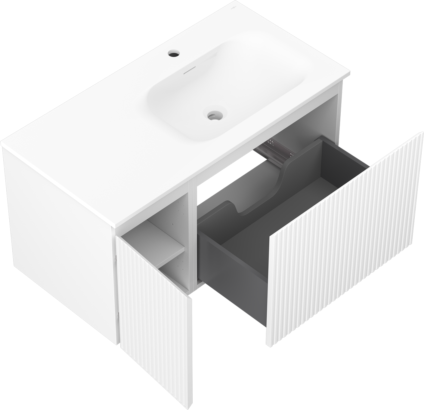 Výrez v zásuvke je navrhnutý tak, aby pojal sifón, ktorý je nevyhnutný v umývadlových inštaláciách. Vďaka tomu môže byť nábytok namontovaný plne funkčne, bez nutnosti vzdávať sa priestoru v zásuvke v prospech inštalácie.