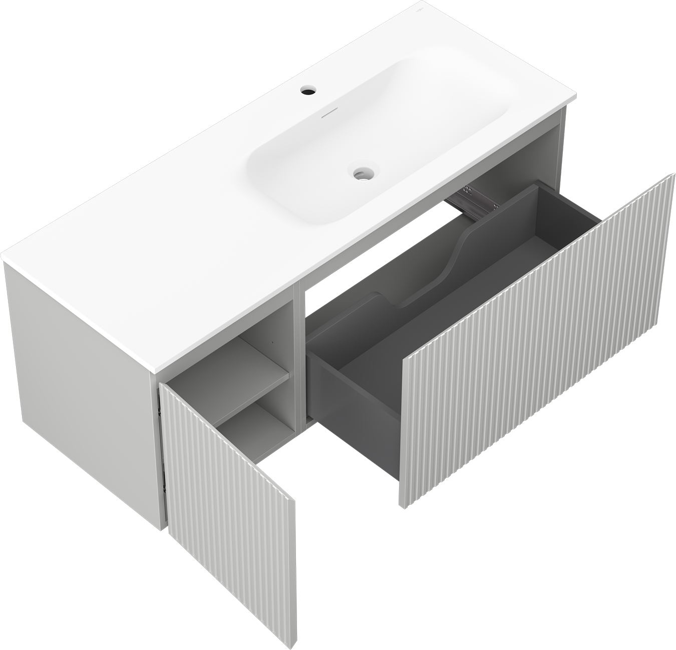 Výrez v zásuvke je navrhnutý tak, aby pojal sifón, ktorý je nevyhnutný v umývadlových inštaláciách. Vďaka tomu môže byť nábytok namontovaný plne funkčne, bez nutnosti vzdávať sa priestoru v zásuvke v prospech inštalácie.