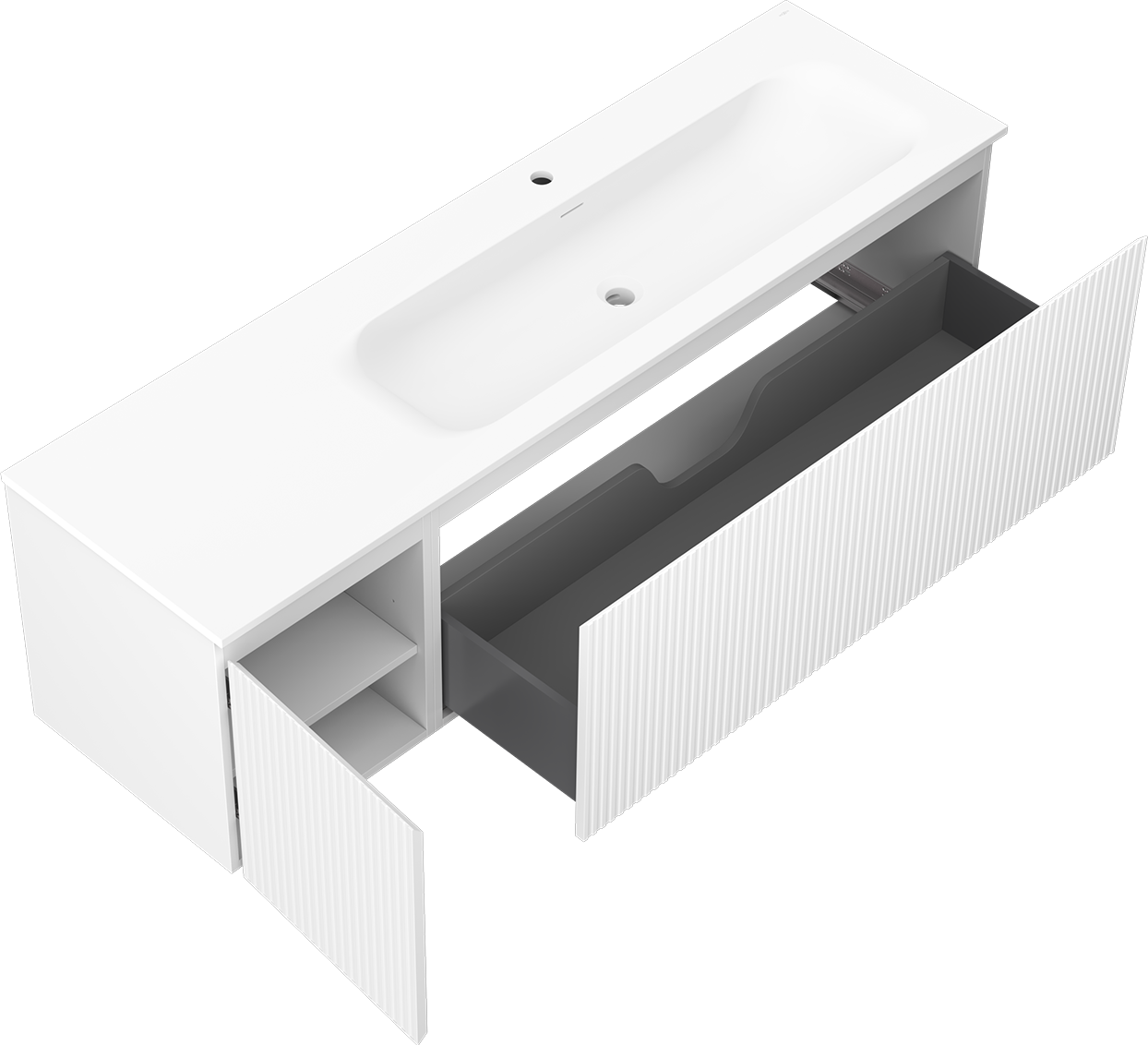Korpus skrinky je dodávaný v plne zloženej podobe, čo znamená maximálne pohodlie a úsporu času. Nemusíte strácať hodiny skladaním nábytku – stačí ho namontovať na vybrané miesto v kúpeľni. Je to ideálne riešenie pre osoby, ktoré si cenia rýchlu montáž a okamžitý efekt.