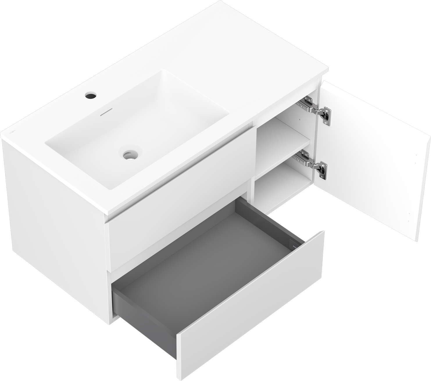 Mexen Orio kúpeľňová skrinka 90 cm s umývadlom Otis ľavým, 2S, 1D, biela matná - 91A13-09047-3-BBFFF01-W18L01