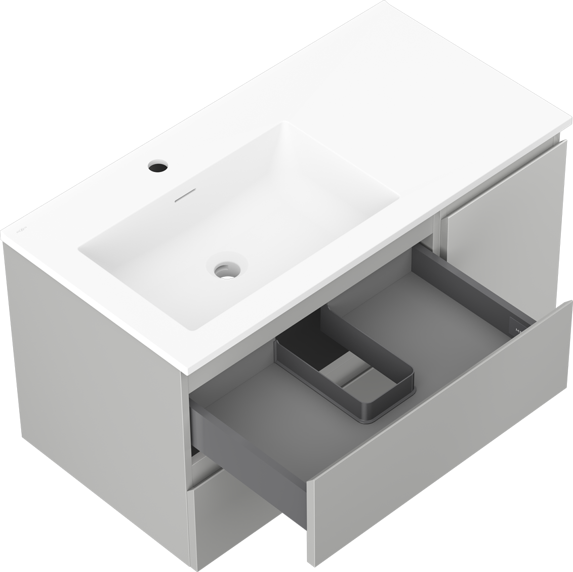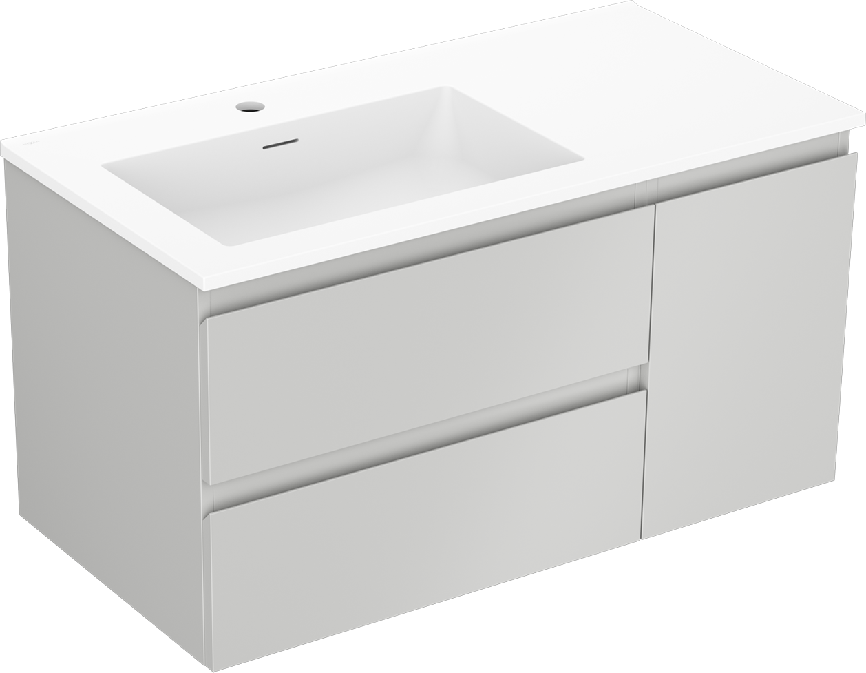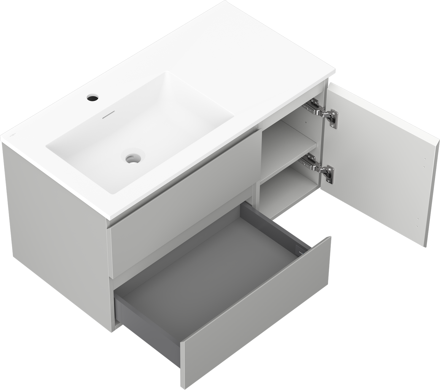 Mexen Orio kúpeľňová skrinka 90 cm s umývadlom Otis ľavým, 2S, 1D, sivá matná/biela matná - 91A13-09047-3-BBFFF62-W18L01
