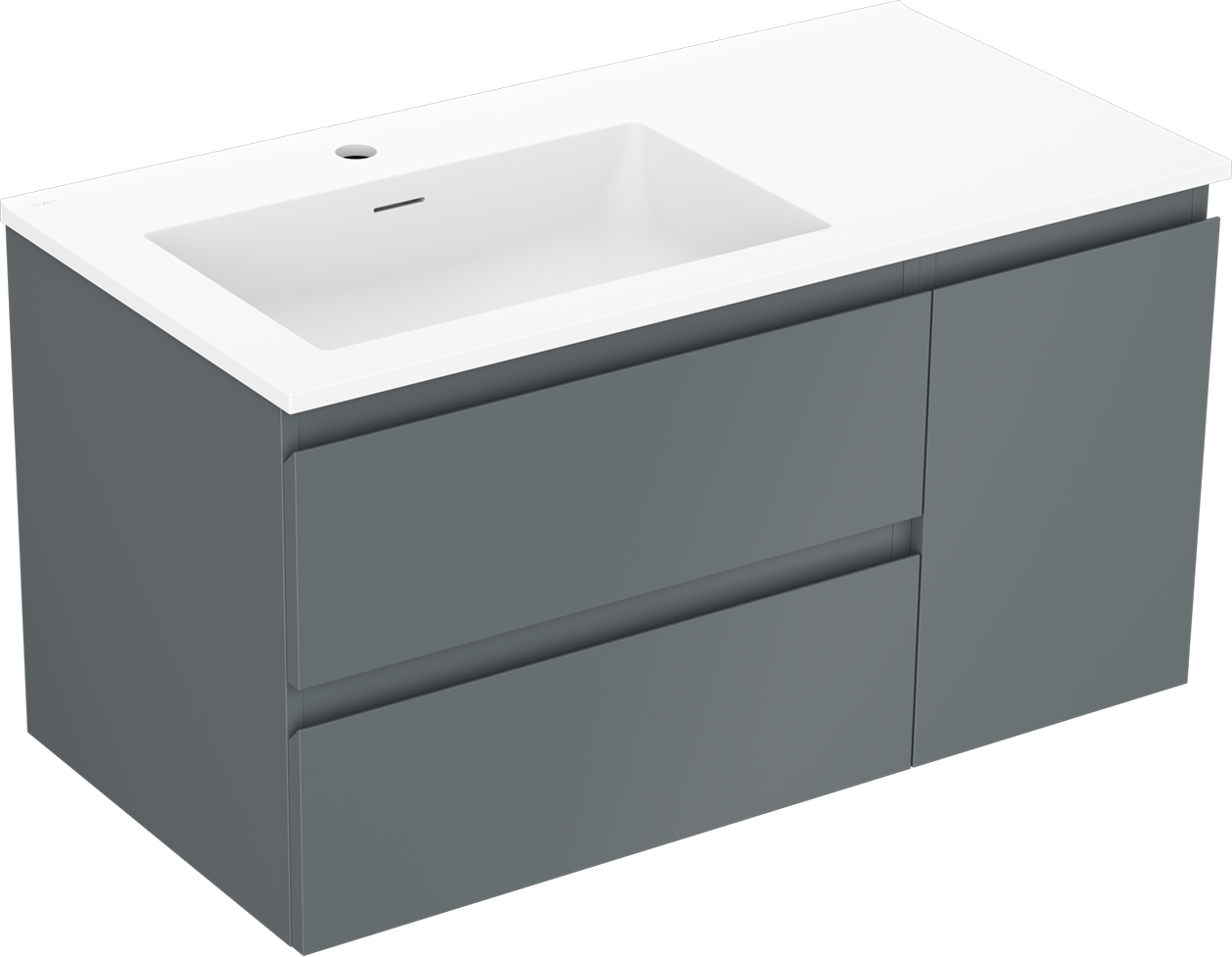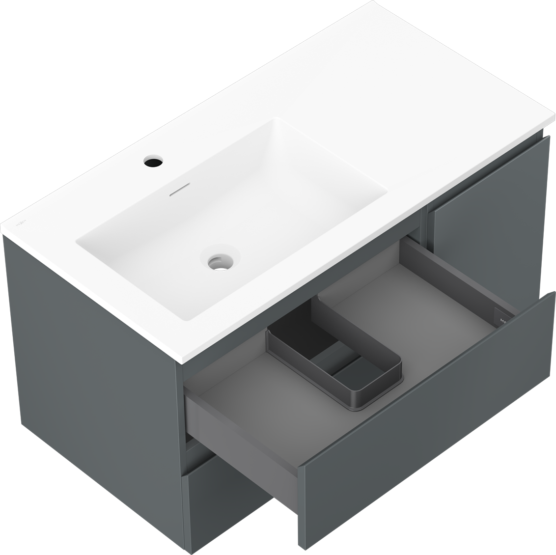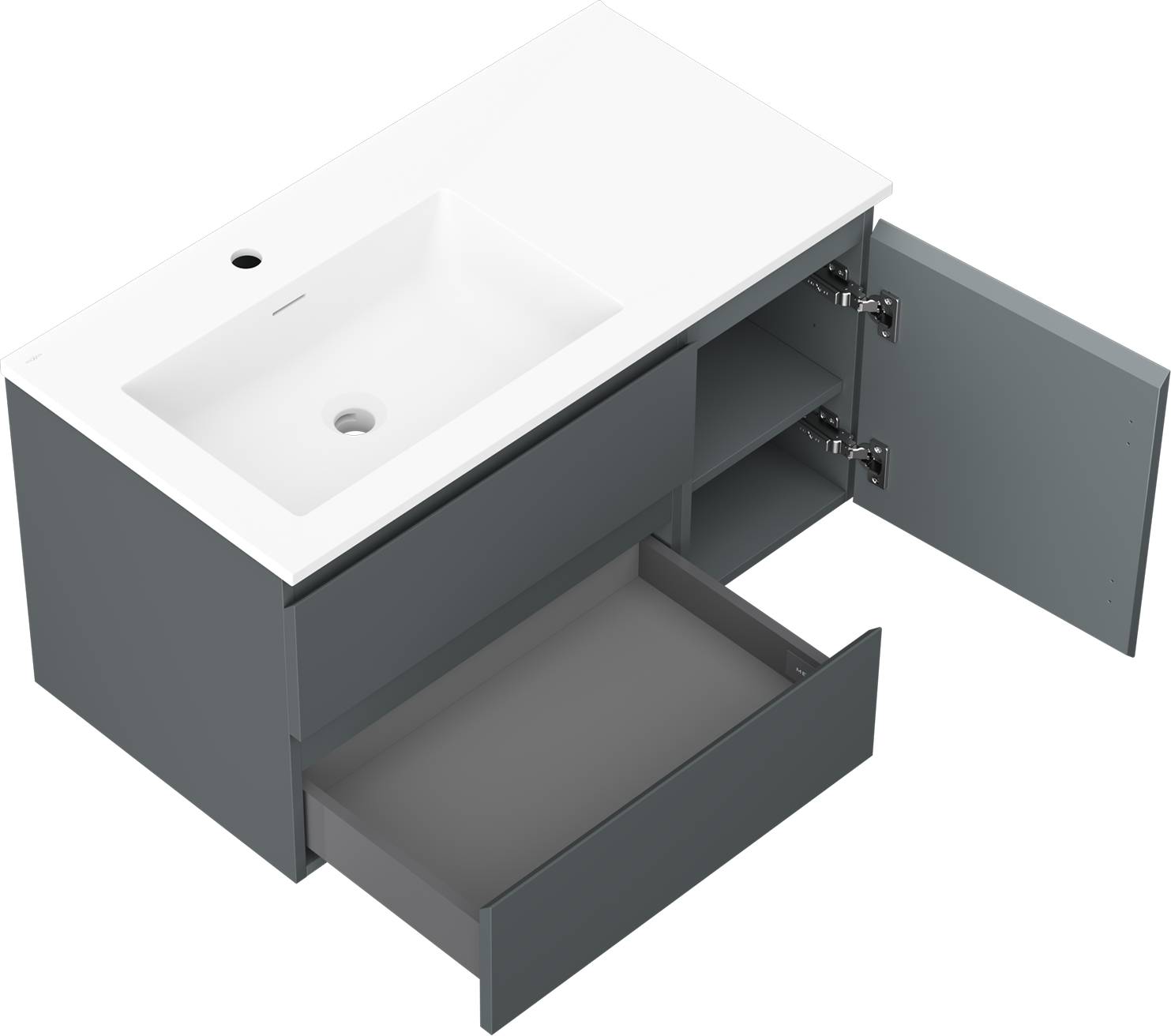 Mexen Orio kúpeľňová skrinka 90 cm s umývadlom Otis ľavým, 2S, 1D, grafit mat/biela mat - 91A13-09047-3-BBFFF66-W18L01