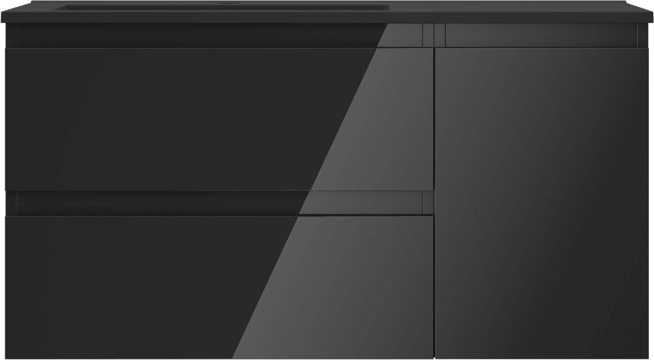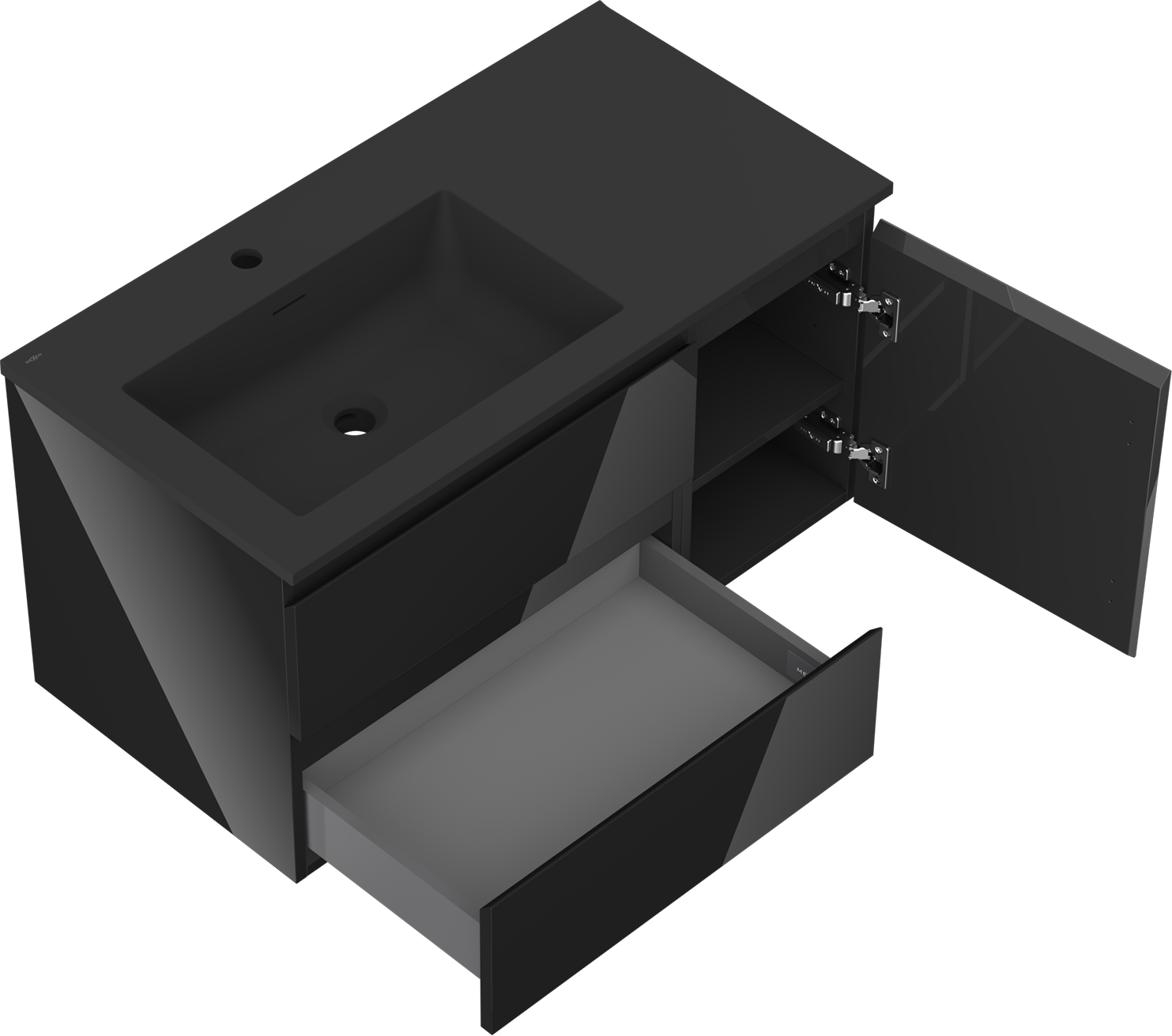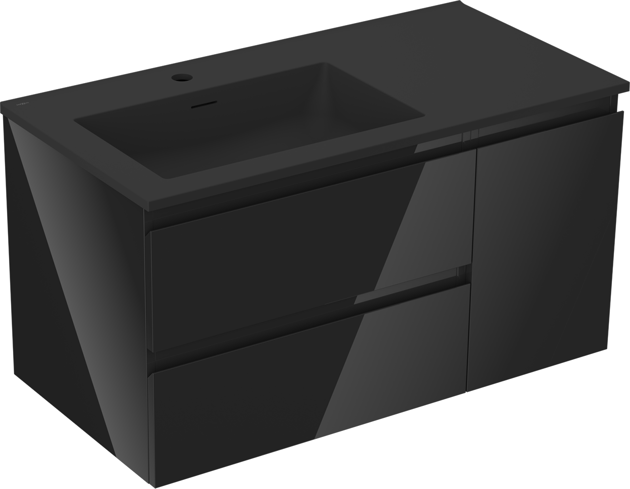 Mexen Orio kúpeľňová skrinka 90 cm s umývadlom Otis ľavým, 2S, 1D, čierny lesk/čierny mat - 91A13-09047-3-BBFFF70-W18L71