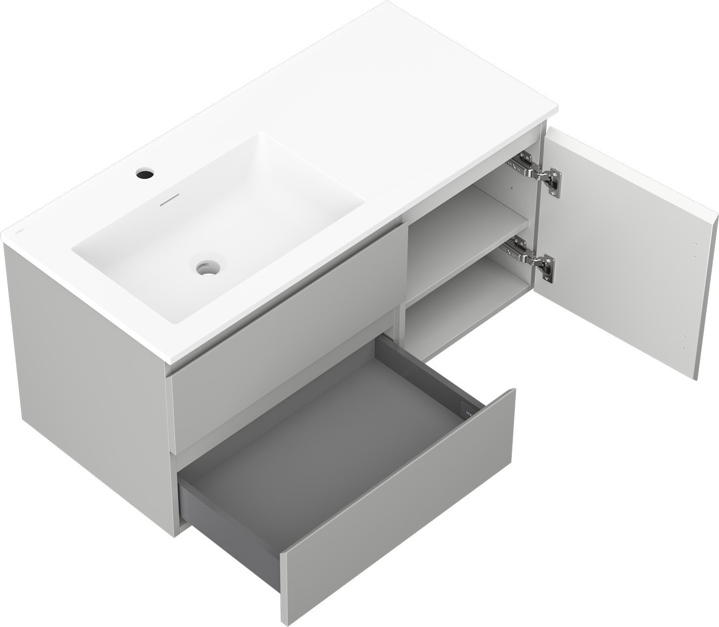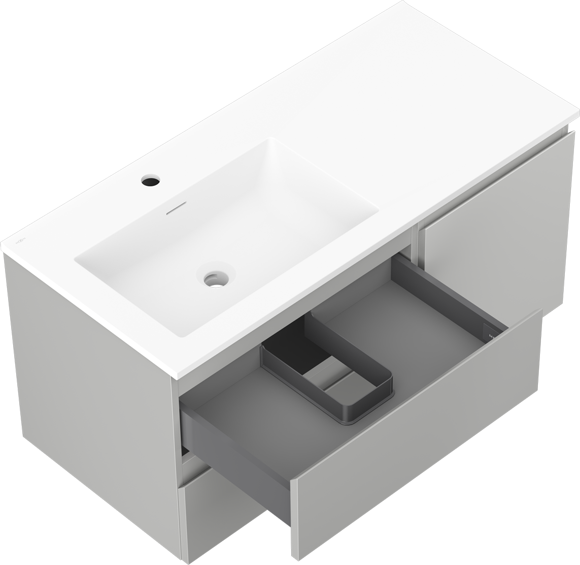 Výrez v zásuvke je navrhnutý tak, aby pojal sifón, ktorý je nevyhnutný v umývadlových inštaláciách. Vďaka tomu môže byť nábytok namontovaný plne funkčne, bez nutnosti vzdávať sa priestoru v zásuvke v prospech inštalácie.