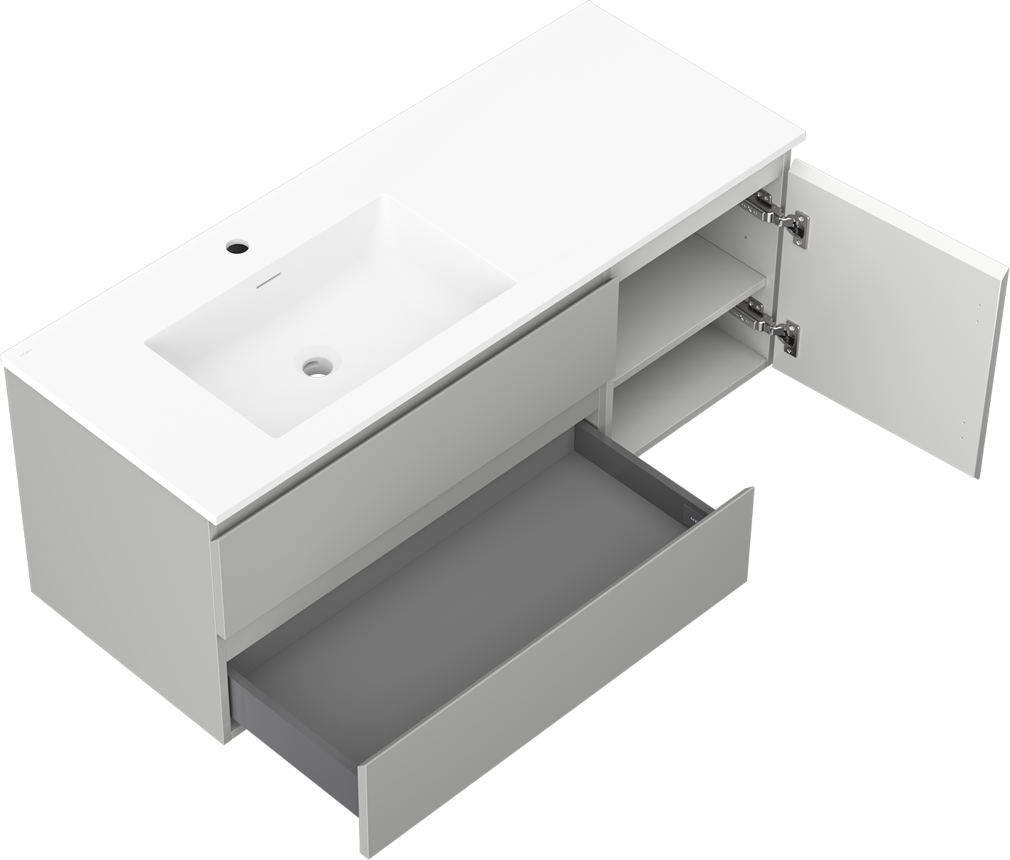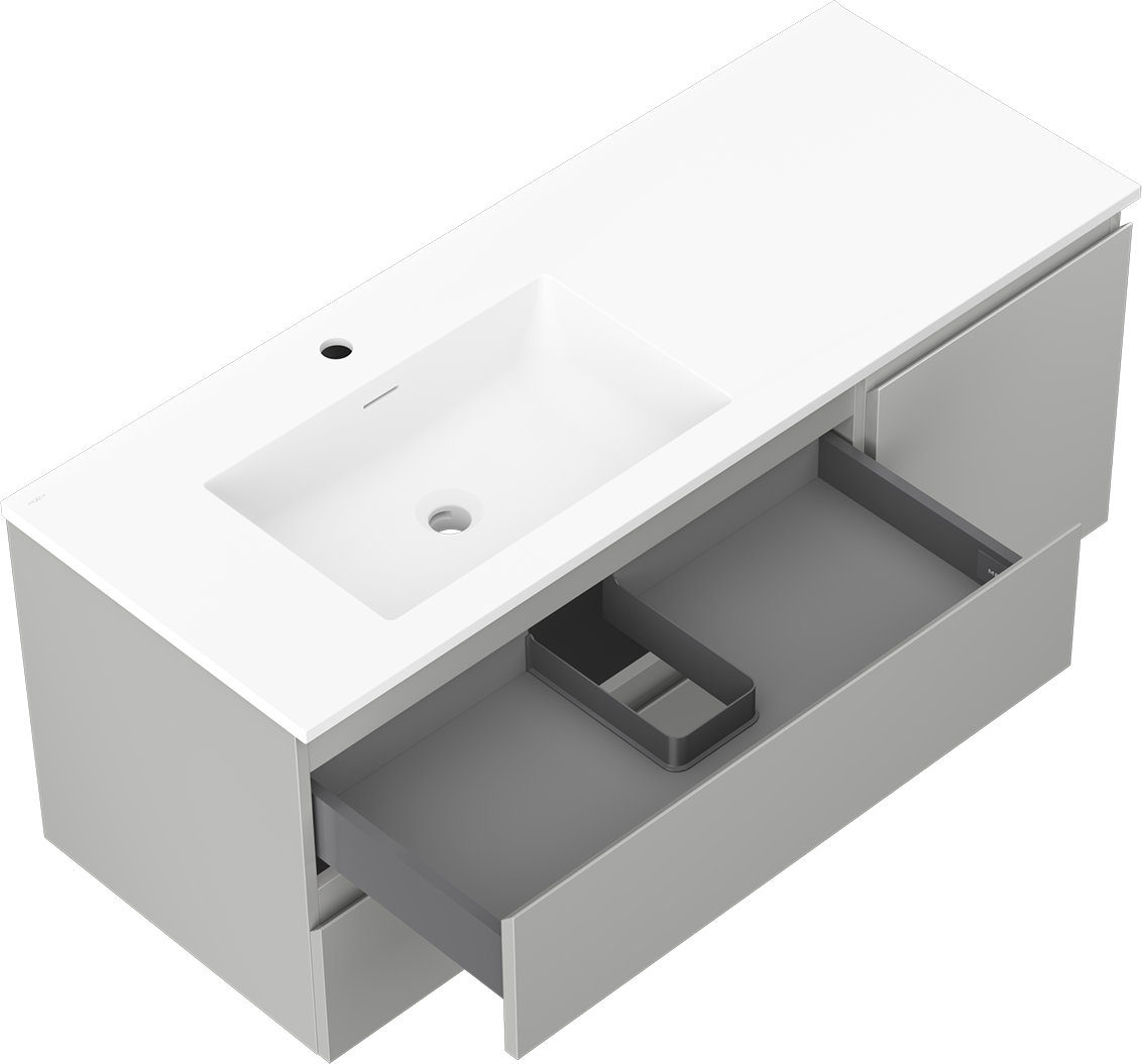 Výrez v zásuvke je navrhnutý tak, aby pojal sifón, ktorý je nevyhnutný v umývadlových inštaláciách. Vďaka tomu môže byť nábytok namontovaný plne funkčne, bez nutnosti vzdávať sa priestoru v zásuvke v prospech inštalácie.