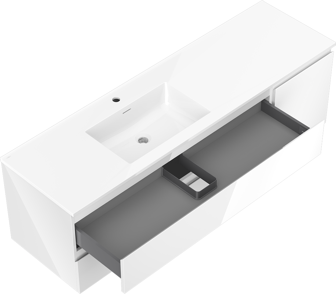 Výrez v zásuvke je navrhnutý tak, aby pojal sifón, ktorý je nevyhnutný v umývadlových inštaláciách. Vďaka tomu môže byť nábytok namontovaný plne funkčne, bez nutnosti vzdávať sa priestoru v zásuvke v prospech inštalácie.