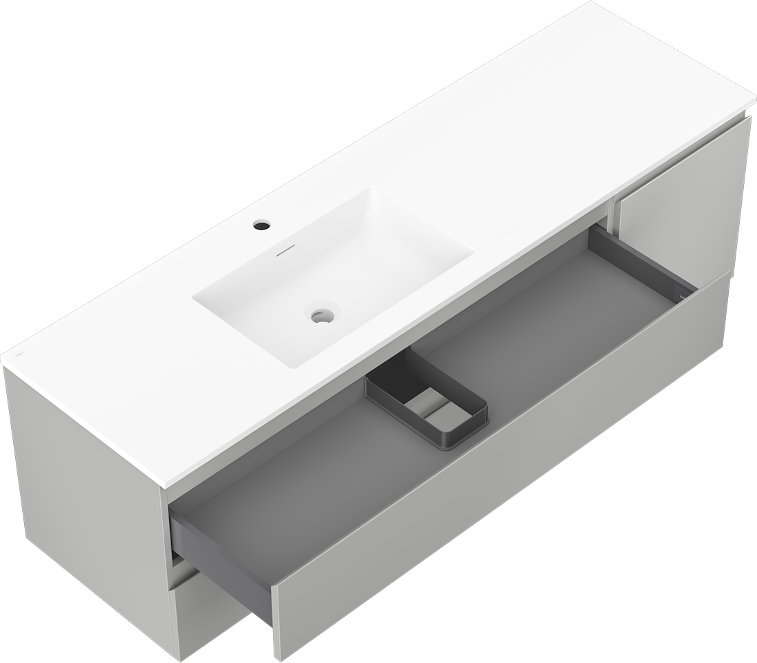 Výrez v zásuvke je navrhnutý tak, aby pojal sifón, ktorý je nevyhnutný v umývadlových inštaláciách. Vďaka tomu môže byť nábytok namontovaný plne funkčne, bez nutnosti vzdávať sa priestoru v zásuvke v prospech inštalácie.