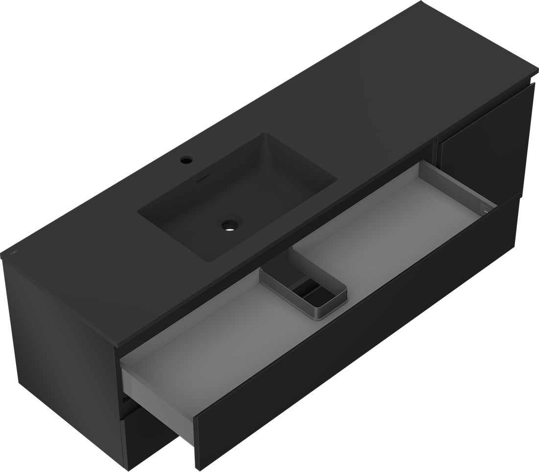 Výrez v zásuvke je navrhnutý tak, aby pojal sifón, ktorý je nevyhnutný v umývadlových inštaláciách. Vďaka tomu môže byť nábytok namontovaný plne funkčne, bez nutnosti vzdávať sa priestoru v zásuvke v prospech inštalácie.