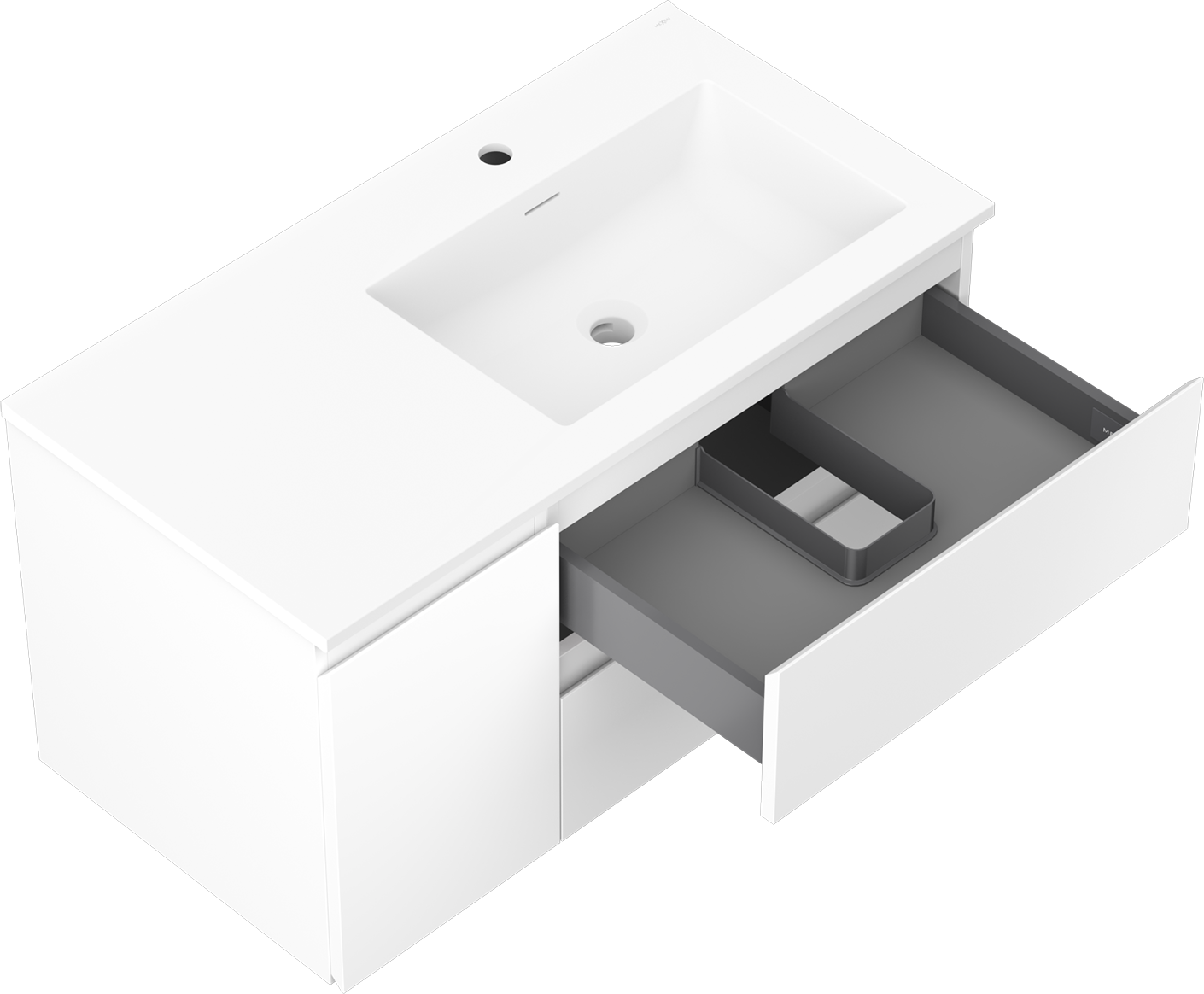 Výrez v zásuvke je navrhnutý tak, aby pojal sifón, ktorý je nevyhnutný v umývadlových inštaláciách. Vďaka tomu môže byť nábytok namontovaný plne funkčne, bez nutnosti vzdávať sa priestoru v zásuvke v prospech inštalácie.