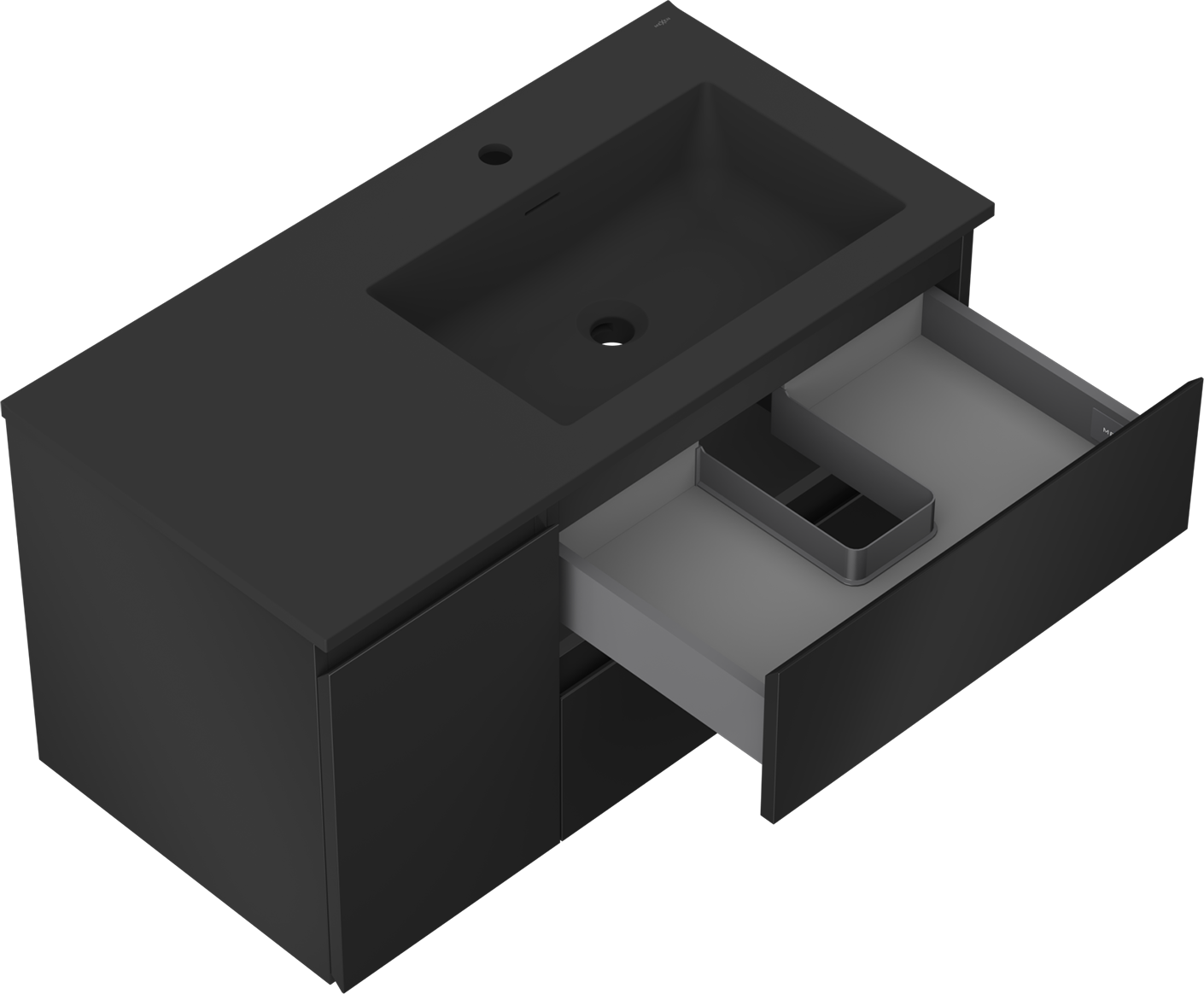 Výrez v zásuvke je navrhnutý tak, aby pojal sifón, ktorý je nevyhnutný v umývadlových inštaláciách. Vďaka tomu môže byť nábytok namontovaný plne funkčne, bez nutnosti vzdávať sa priestoru v zásuvke v prospech inštalácie.