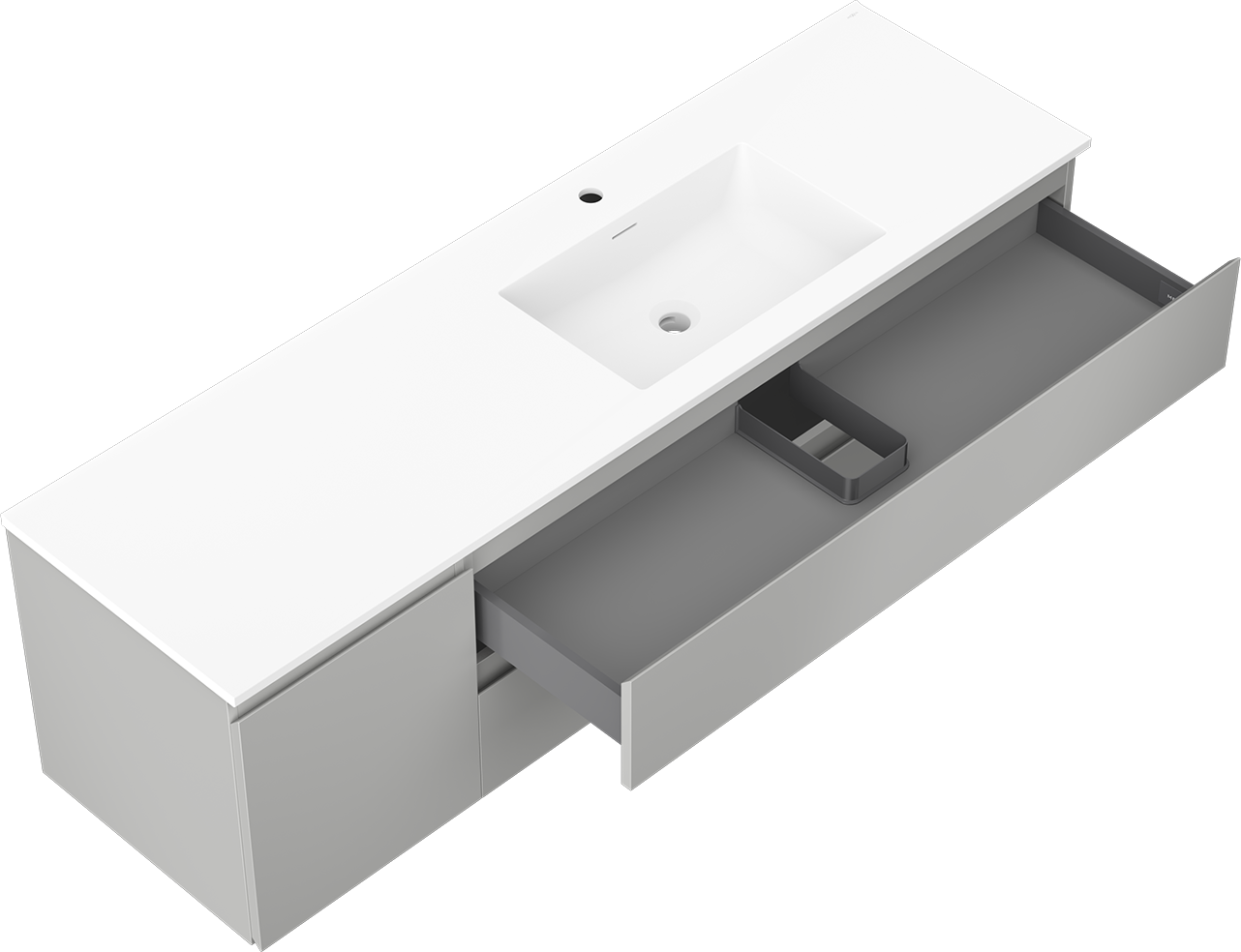 Výrez v zásuvke je navrhnutý tak, aby pojal sifón, ktorý je nevyhnutný v umývadlových inštaláciách. Vďaka tomu môže byť nábytok namontovaný plne funkčne, bez nutnosti vzdávať sa priestoru v zásuvke v prospech inštalácie.