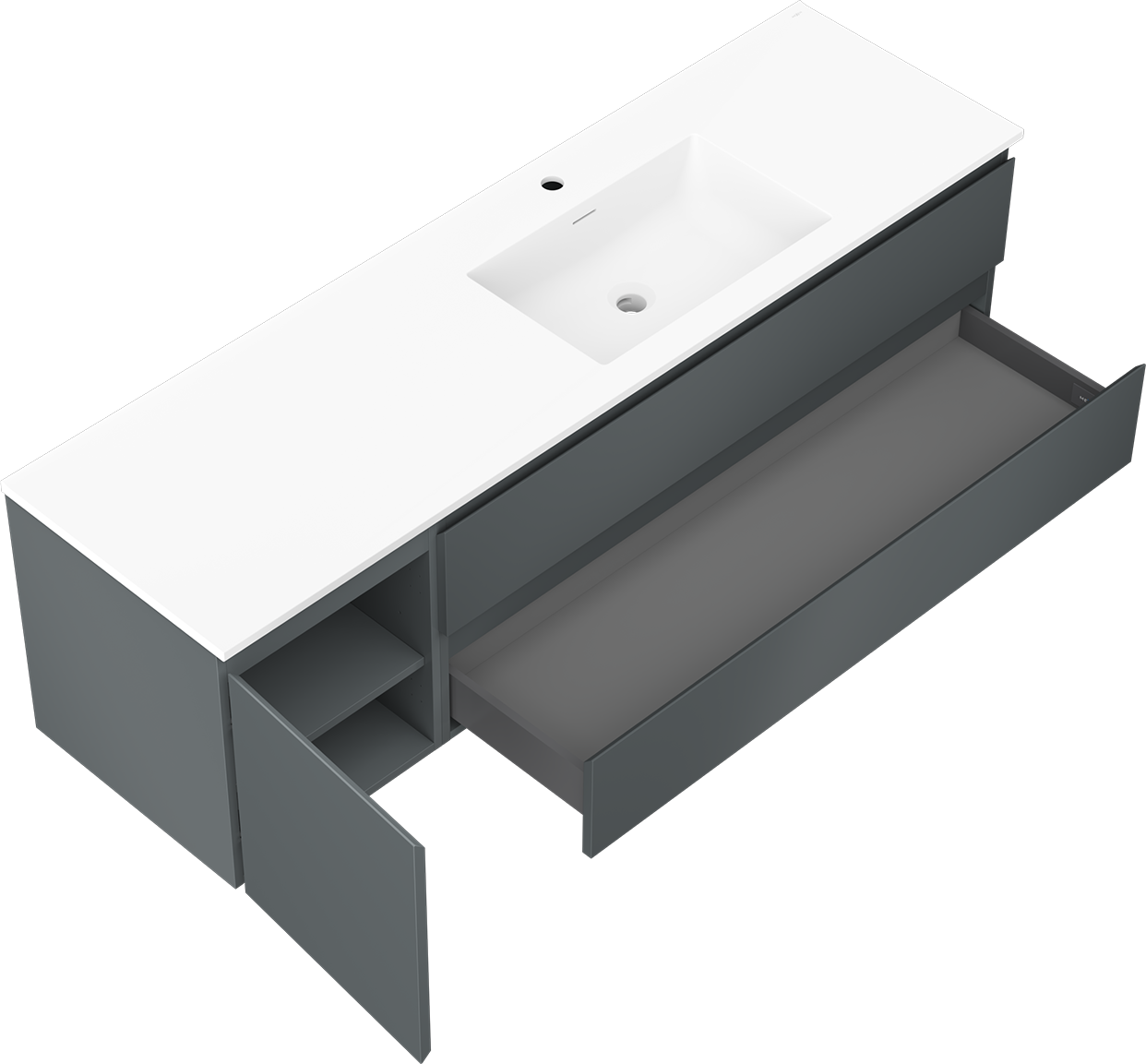 Výrez v zásuvke je navrhnutý tak, aby pojal sifón, ktorý je nevyhnutný v umývadlových inštaláciách. Vďaka tomu môže byť nábytok namontovaný plne funkčne, bez nutnosti vzdávať sa priestoru v zásuvke v prospech inštalácie.