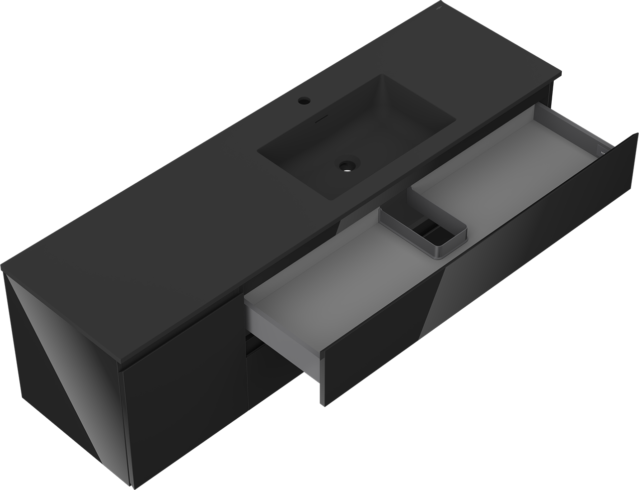 Výrez v zásuvke je navrhnutý tak, aby pojal sifón, ktorý je nevyhnutný v umývadlových inštaláciách. Vďaka tomu môže byť nábytok namontovaný plne funkčne, bez nutnosti vzdávať sa priestoru v zásuvke v prospech inštalácie.