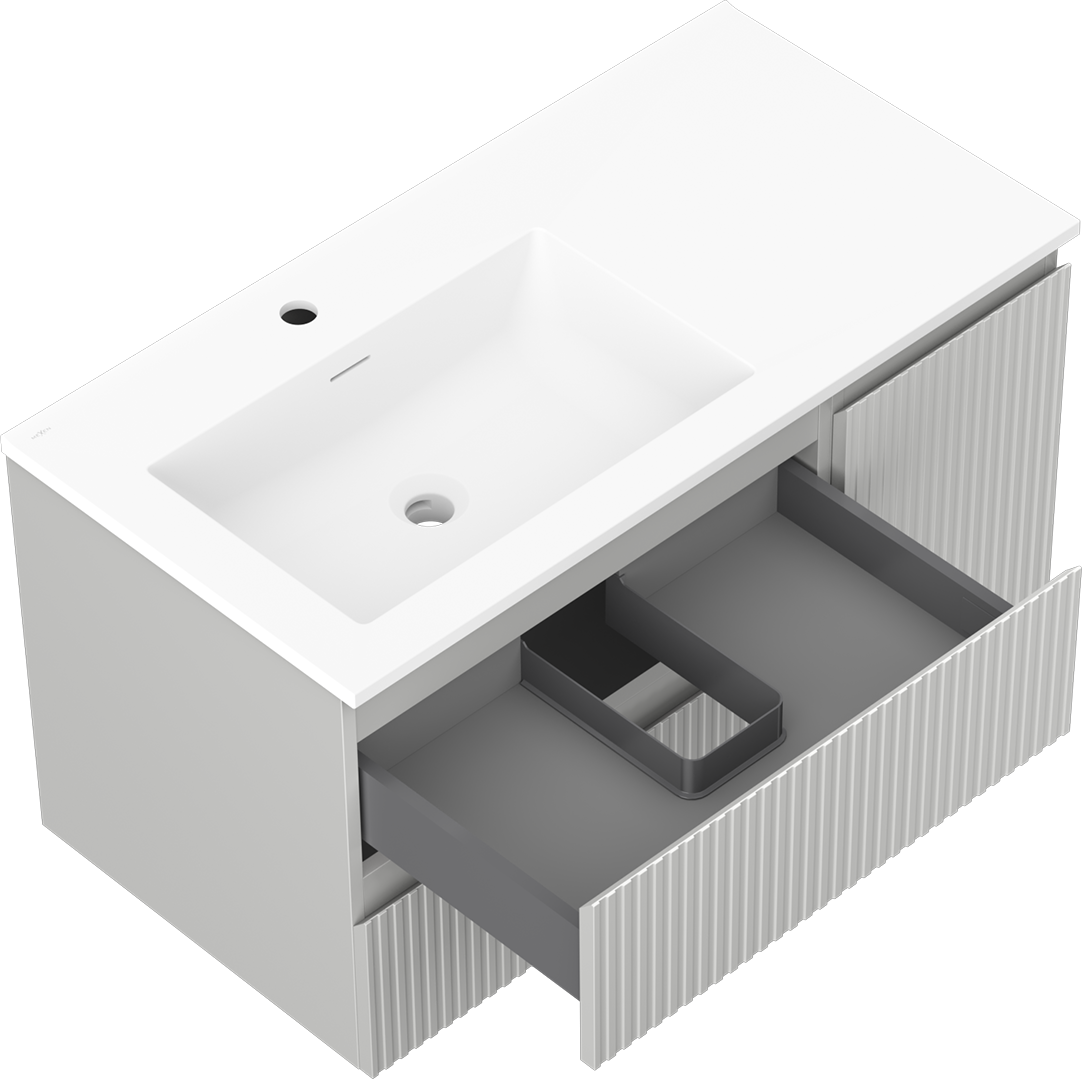 Výrez v zásuvke je navrhnutý tak, aby pojal sifón, ktorý je nevyhnutný v umývadlových inštaláciách. Vďaka tomu môže byť nábytok namontovaný plne funkčne, bez nutnosti vzdávať sa priestoru v zásuvke v prospech inštalácie.