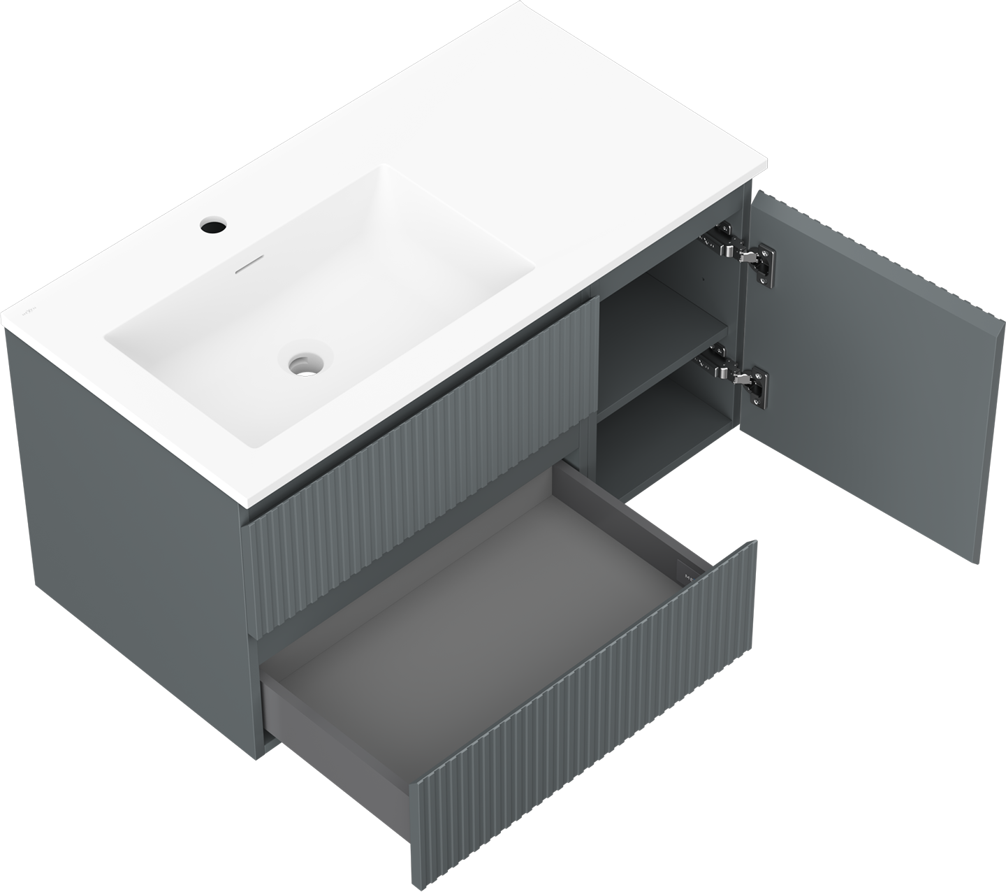 Výrez v zásuvke je navrhnutý tak, aby pojal sifón, ktorý je nevyhnutný v umývadlových inštaláciách. Vďaka tomu môže byť nábytok namontovaný plne funkčne, bez nutnosti vzdávať sa priestoru v zásuvke v prospech inštalácie.