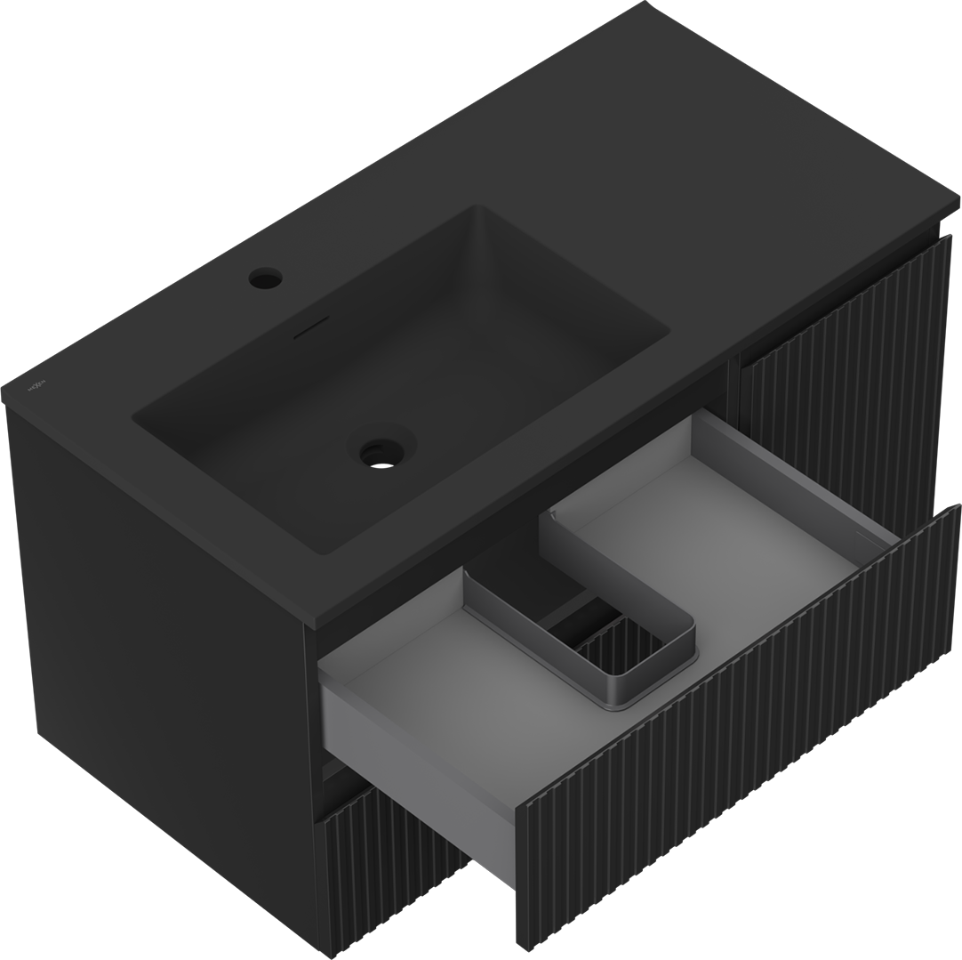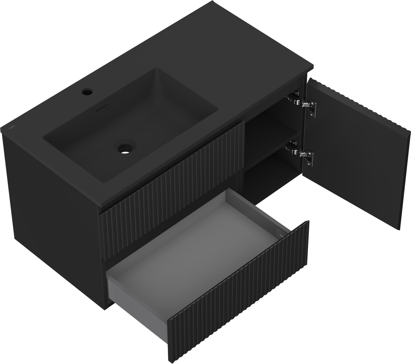Výrez v zásuvke je navrhnutý tak, aby pojal sifón, ktorý je nevyhnutný v umývadlových inštaláciách. Vďaka tomu môže byť nábytok namontovaný plne funkčne, bez nutnosti vzdávať sa priestoru v zásuvke v prospech inštalácie.