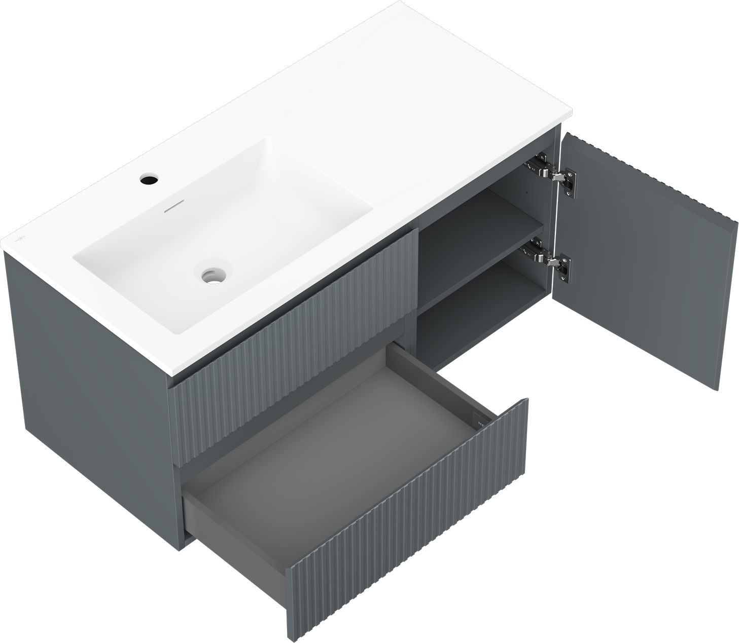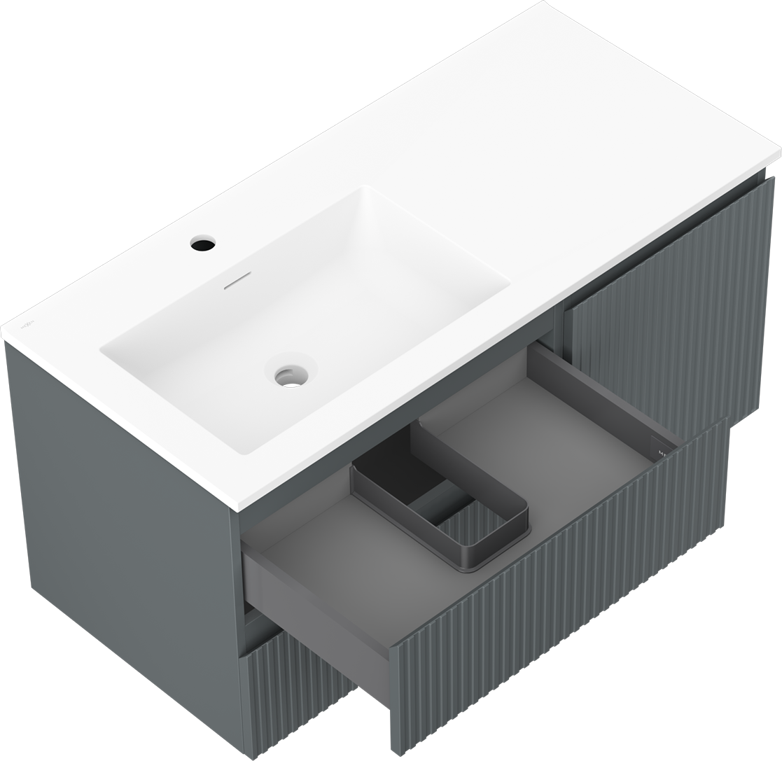 Výrez v zásuvke je navrhnutý tak, aby pojal sifón, ktorý je nevyhnutný v umývadlových inštaláciách. Vďaka tomu môže byť nábytok namontovaný plne funkčne, bez nutnosti vzdávať sa priestoru v zásuvke v prospech inštalácie.