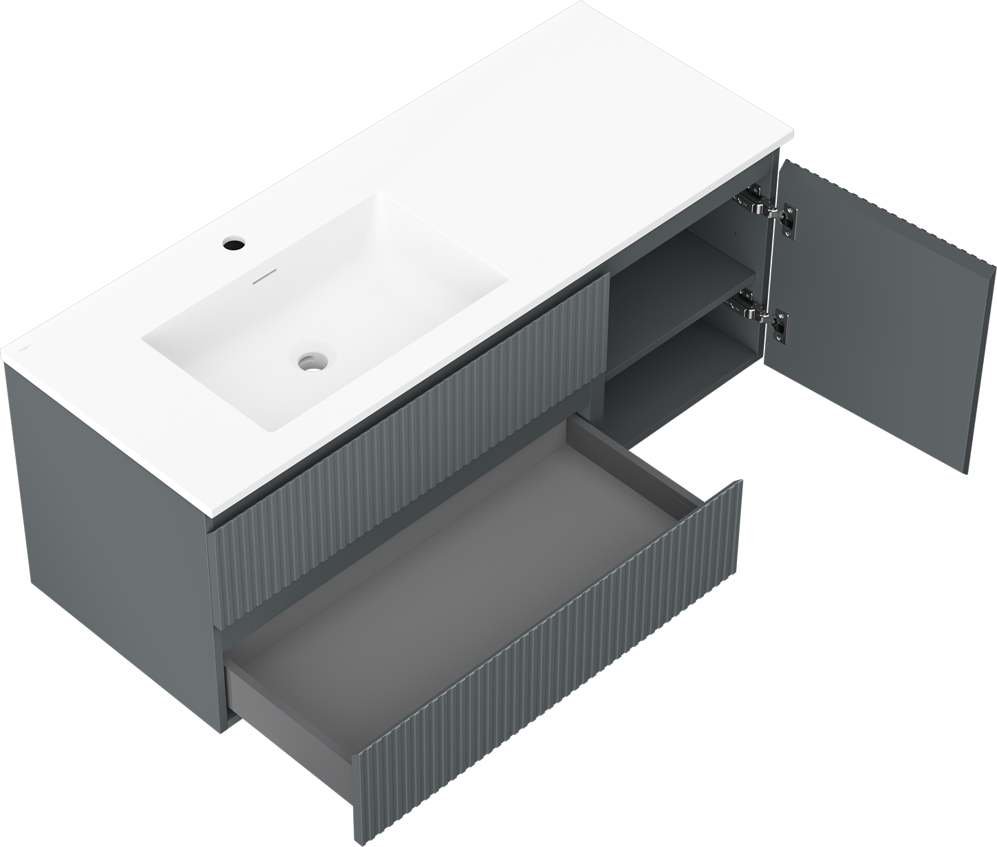 Výrez v zásuvke je navrhnutý tak, aby pojal sifón, ktorý je nevyhnutný v umývadlových inštaláciách. Vďaka tomu môže byť nábytok namontovaný plne funkčne, bez nutnosti vzdávať sa priestoru v zásuvke v prospech inštalácie.