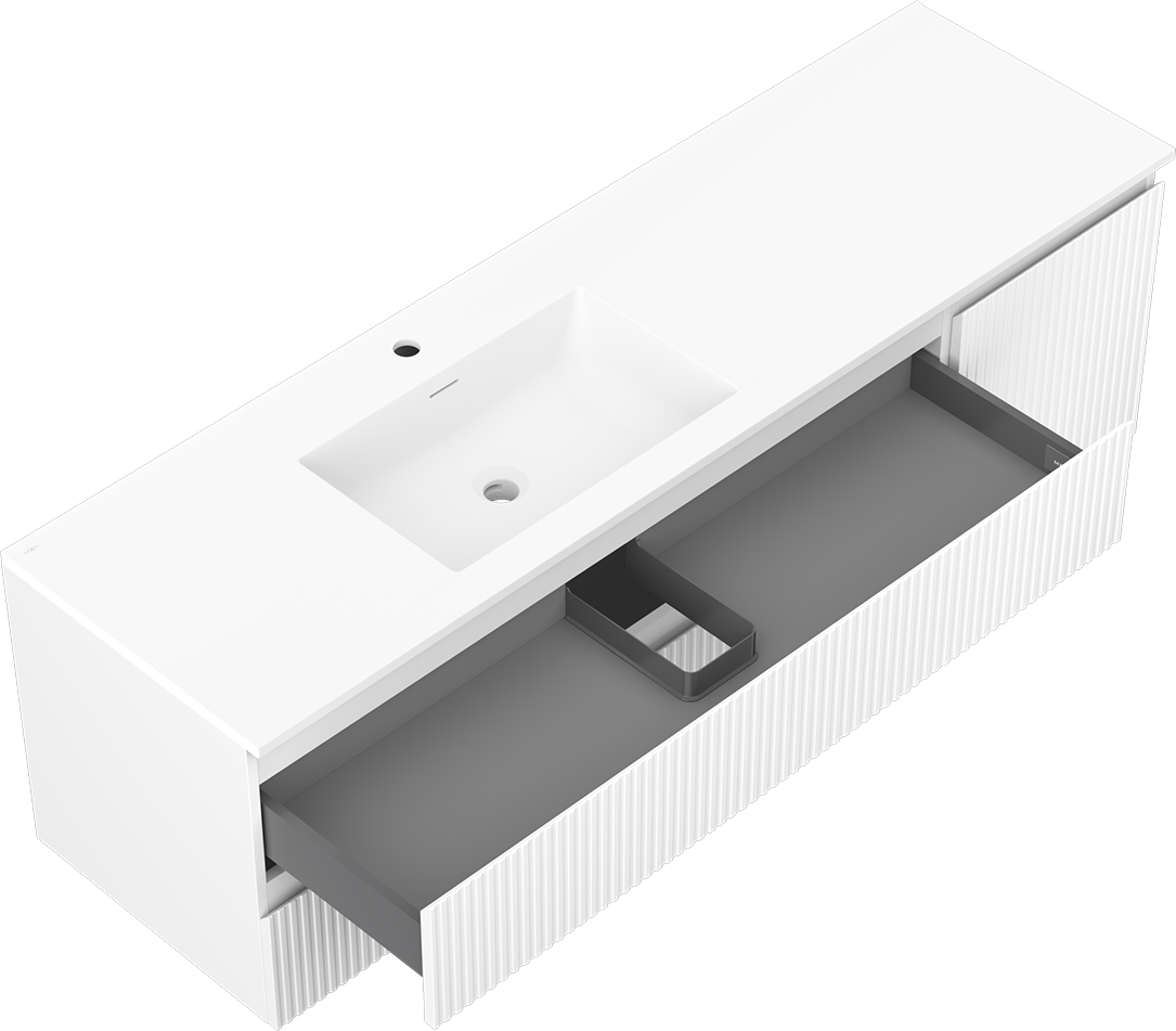 Výrez v zásuvke je navrhnutý tak, aby pojal sifón, ktorý je nevyhnutný v umývadlových inštaláciách. Vďaka tomu môže byť nábytok namontovaný plne funkčne, bez nutnosti vzdávať sa priestoru v zásuvke v prospech inštalácie.