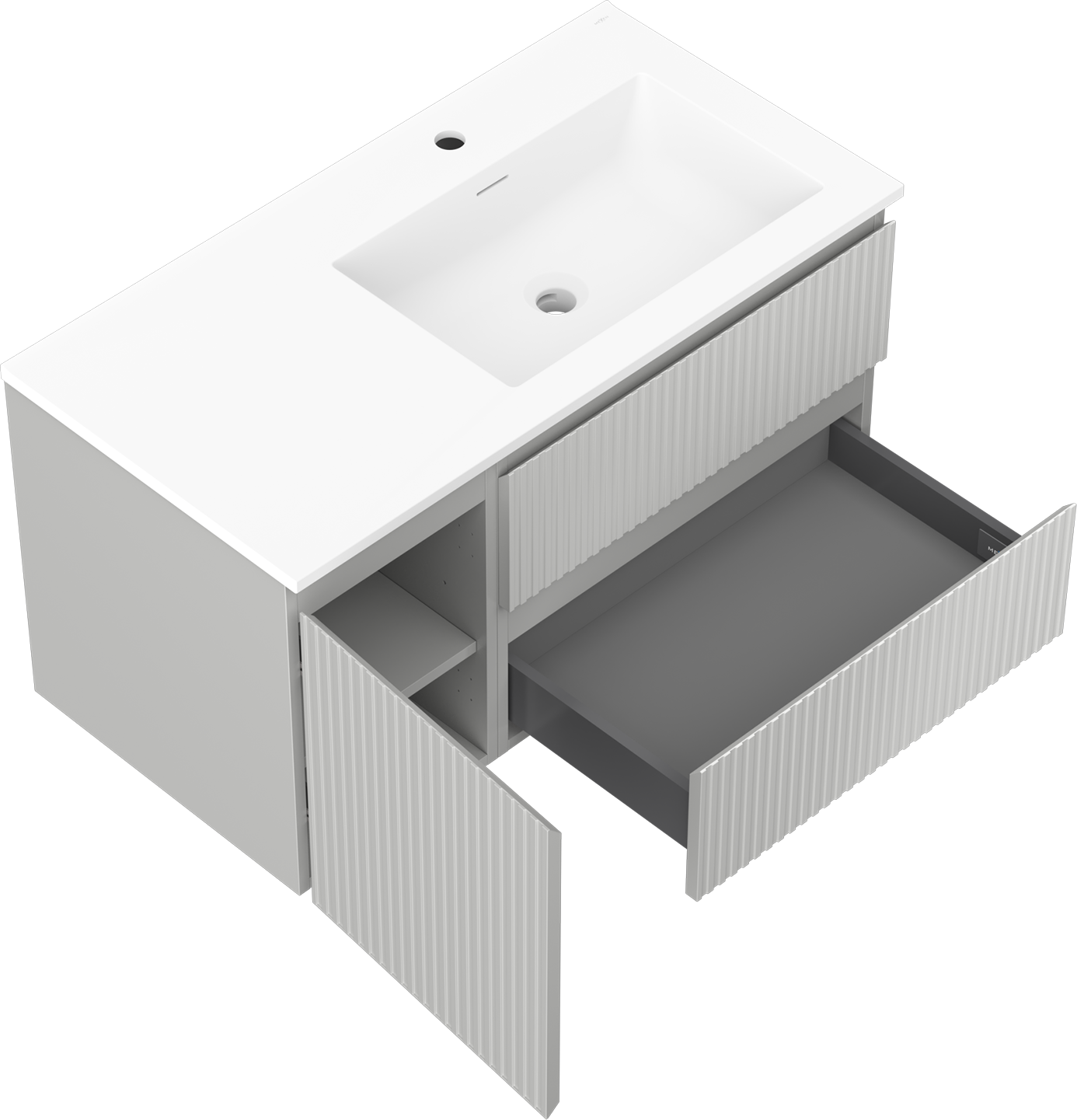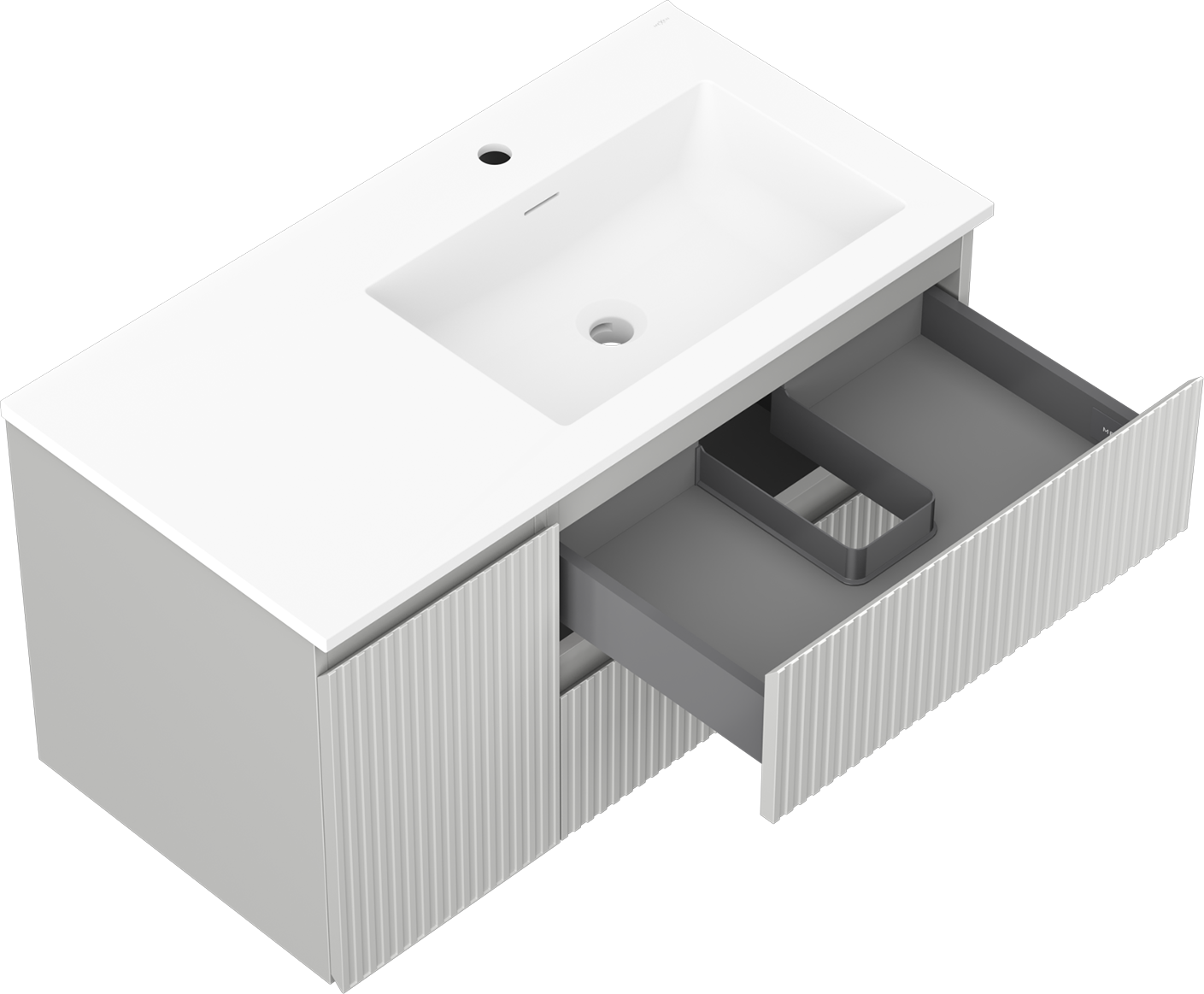 Výrez v zásuvke je navrhnutý tak, aby pojal sifón, ktorý je nevyhnutný v umývadlových inštaláciách. Vďaka tomu môže byť nábytok namontovaný plne funkčne, bez nutnosti vzdávať sa priestoru v zásuvke v prospech inštalácie.