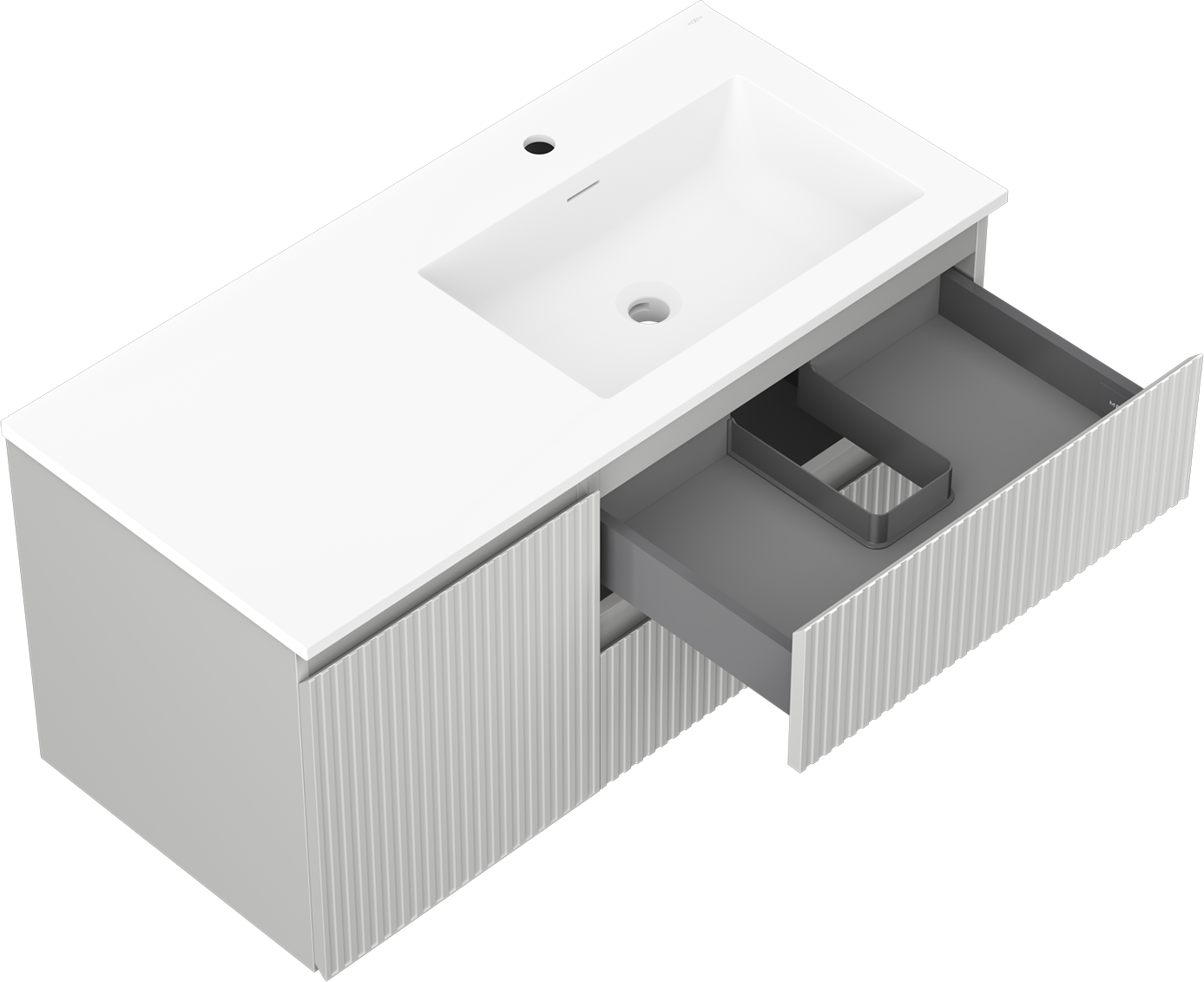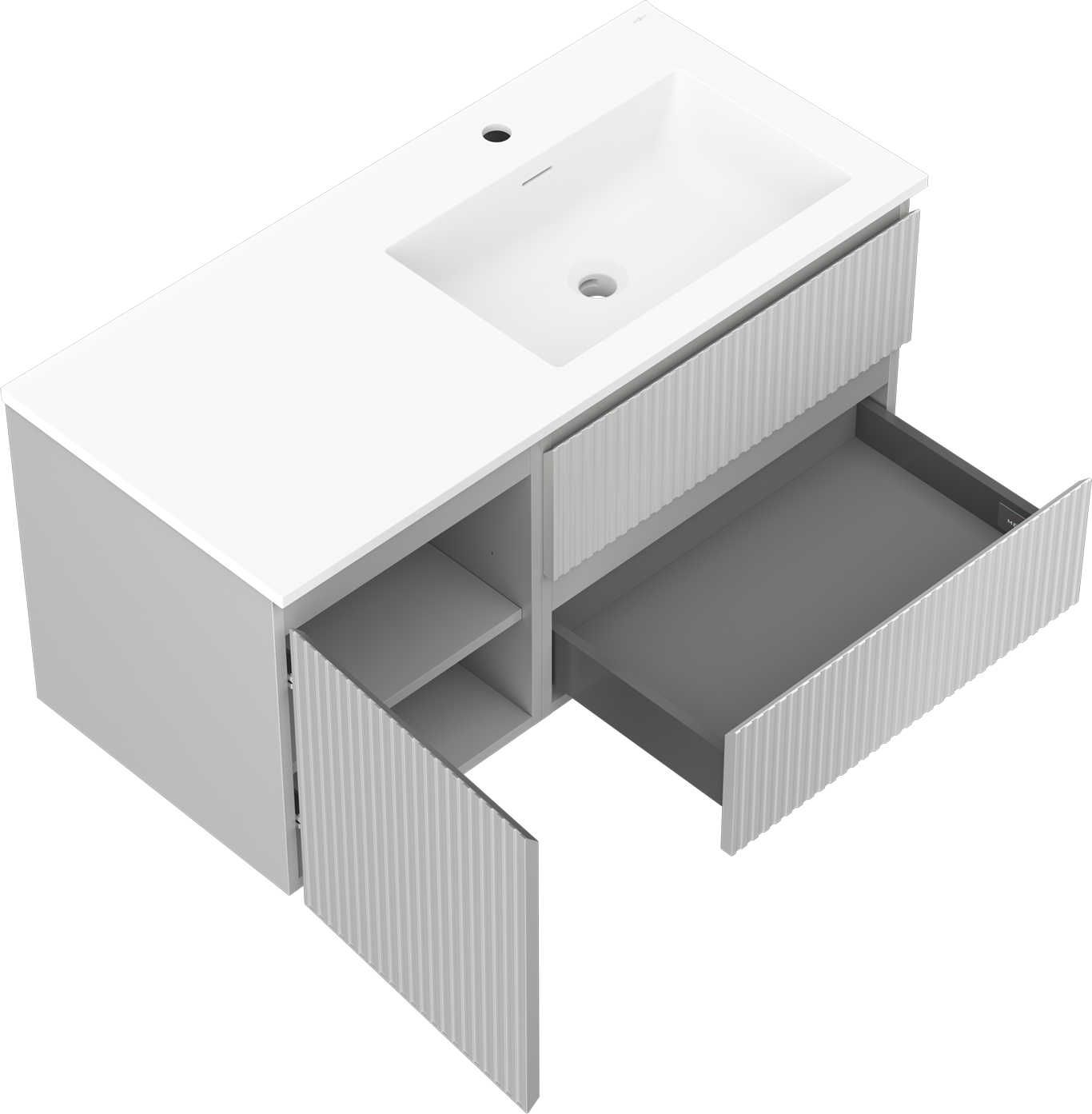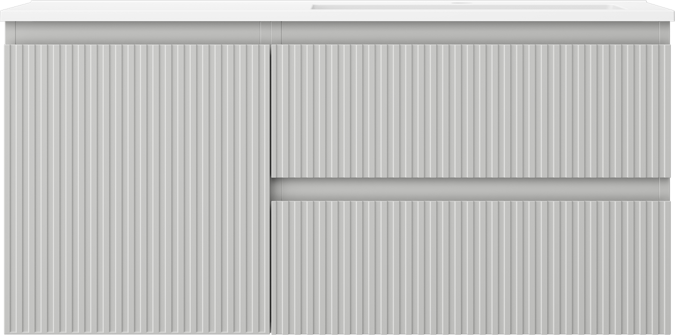 Mexen Rivel kúpeľňová skrinka 100 cm s umývadlom Otis pravá, 2S, 1D, ryhovaná, sivá/biela mat - 91A23-10047-3-BBFFF62-W18P01