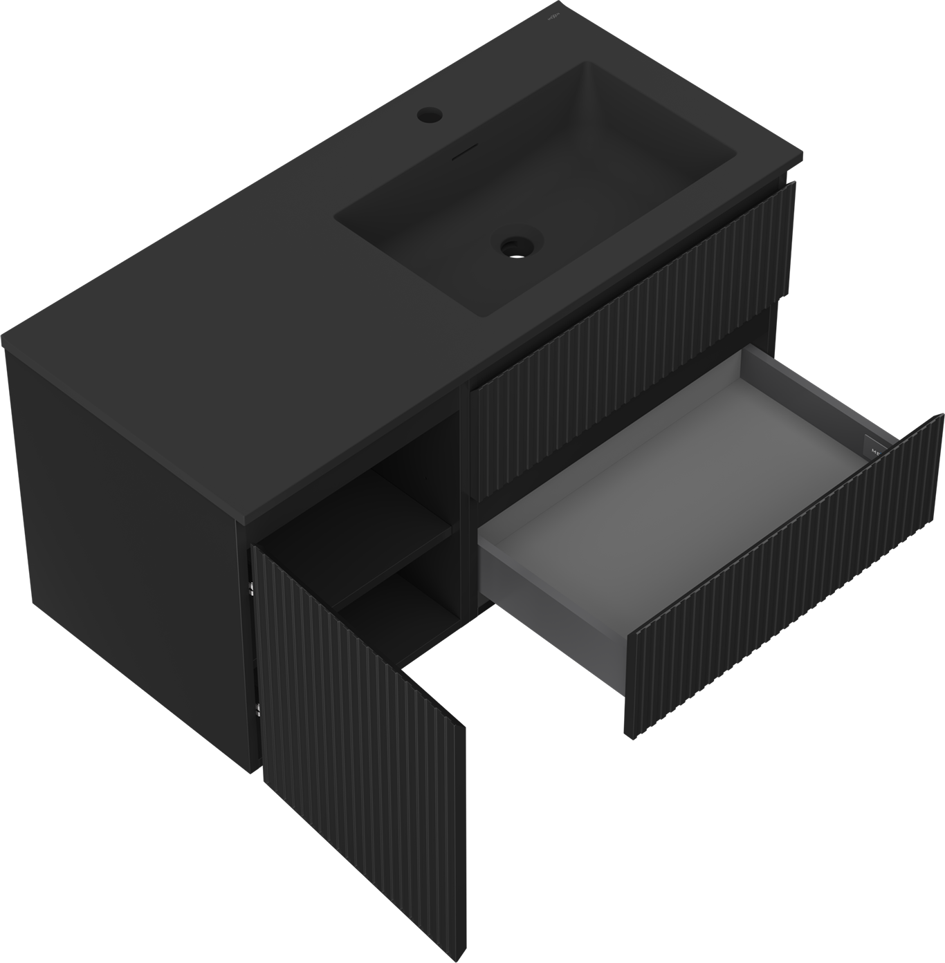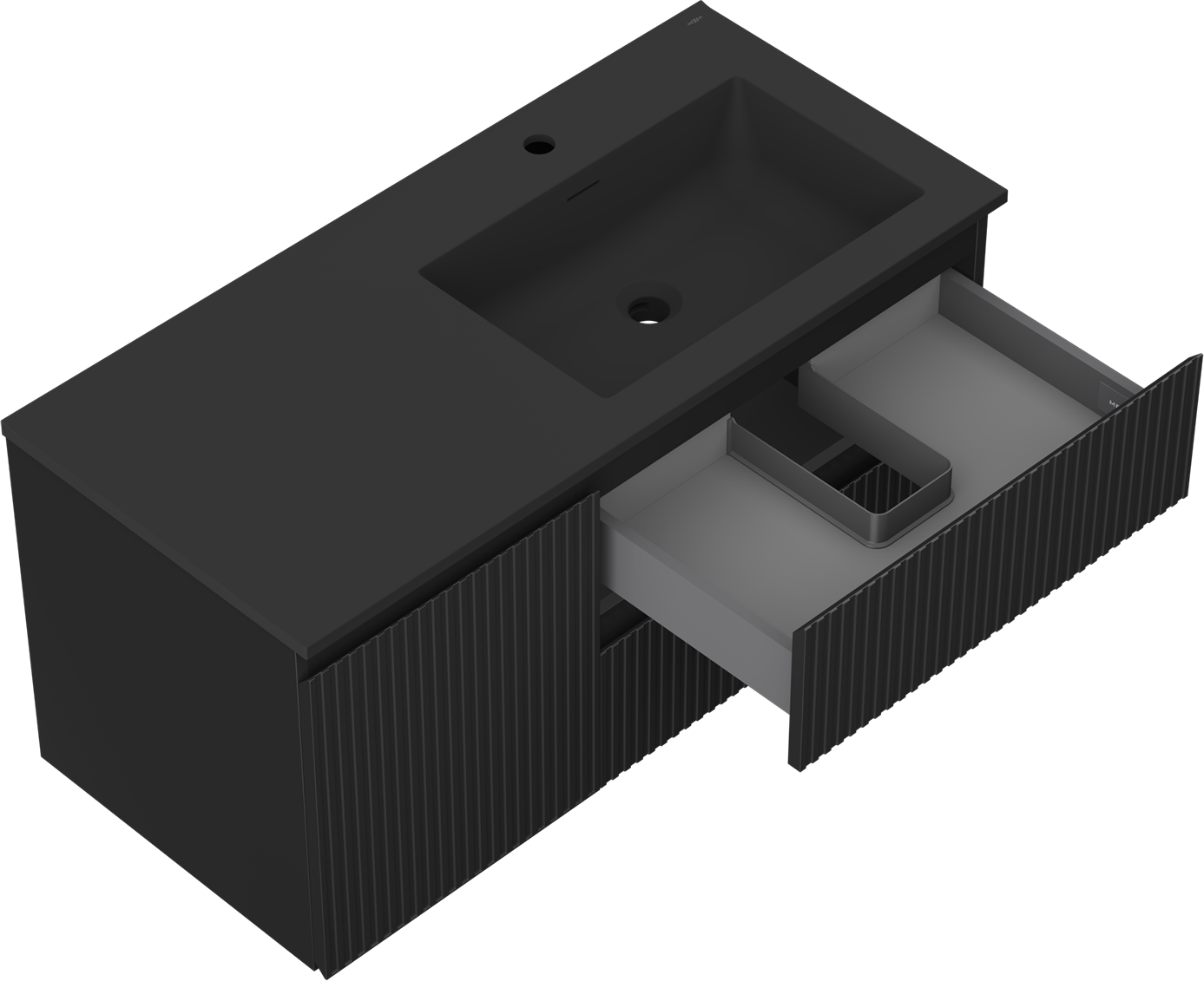 Výrez v zásuvke je navrhnutý tak, aby pojal sifón, ktorý je nevyhnutný v umývadlových inštaláciách. Vďaka tomu môže byť nábytok namontovaný plne funkčne, bez nutnosti vzdávať sa priestoru v zásuvke v prospech inštalácie.