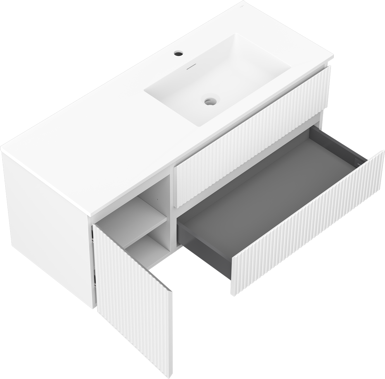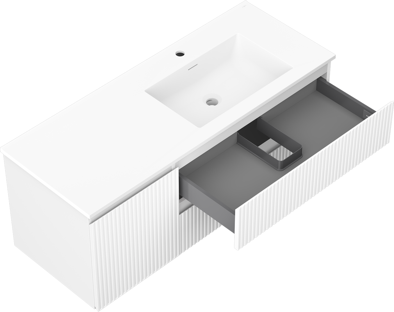 Výrez v zásuvke je navrhnutý tak, aby pojal sifón, ktorý je nevyhnutný v umývadlových inštaláciách. Vďaka tomu môže byť nábytok namontovaný plne funkčne, bez nutnosti vzdávať sa priestoru v zásuvke v prospech inštalácie.