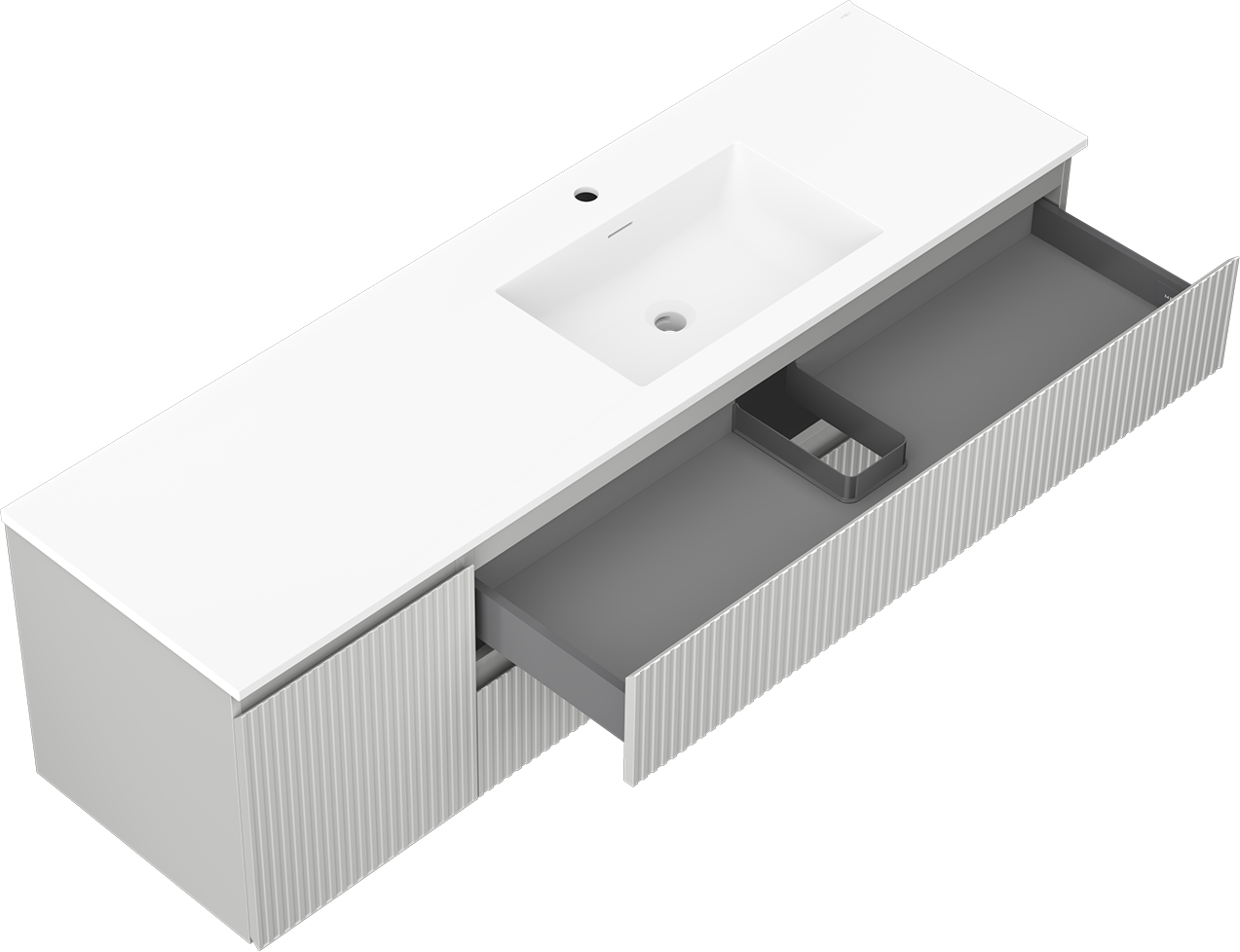 Výrez v zásuvke je navrhnutý tak, aby pojal sifón, ktorý je nevyhnutný v umývadlových inštaláciách. Vďaka tomu môže byť nábytok namontovaný plne funkčne, bez nutnosti vzdávať sa priestoru v zásuvke v prospech inštalácie.