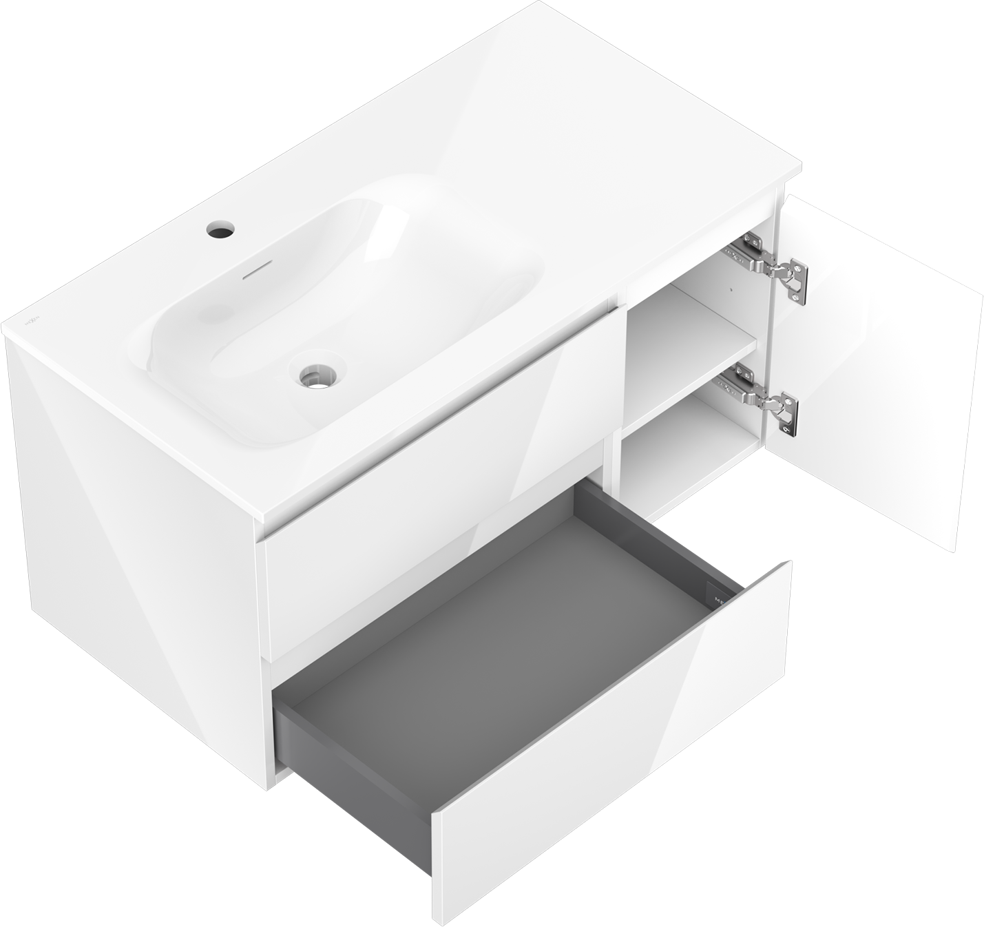 Výrez v zásuvke je navrhnutý tak, aby pojal sifón, ktorý je nevyhnutný v umývadlových inštaláciách. Vďaka tomu môže byť nábytok namontovaný plne funkčne, bez nutnosti vzdávať sa priestoru v zásuvke v prospech inštalácie.