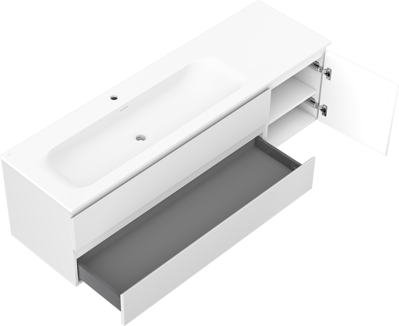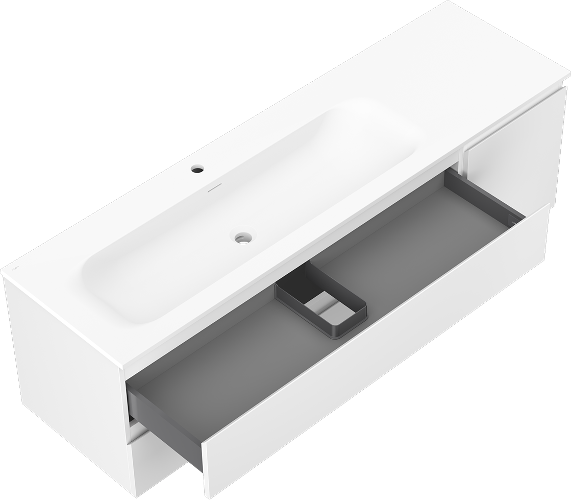 Výrez v zásuvke je navrhnutý tak, aby pojal sifón, ktorý je nevyhnutný v umývadlových inštaláciách. Vďaka tomu môže byť nábytok namontovaný plne funkčne, bez nutnosti vzdávať sa priestoru v zásuvke v prospech inštalácie.