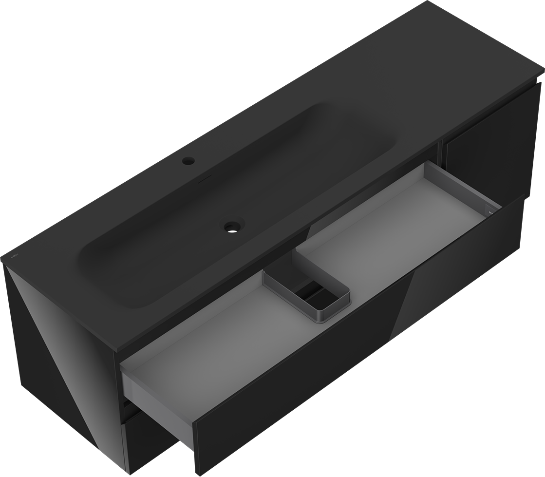 Výrez v zásuvke je navrhnutý tak, aby pojal sifón, ktorý je nevyhnutný v umývadlových inštaláciách. Vďaka tomu môže byť nábytok namontovaný plne funkčne, bez nutnosti vzdávať sa priestoru v zásuvke v prospech inštalácie.