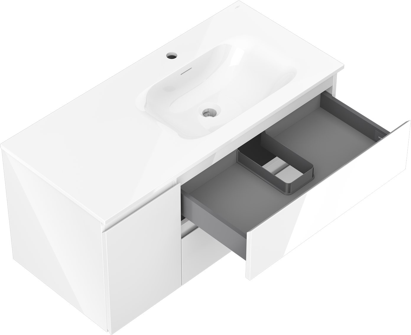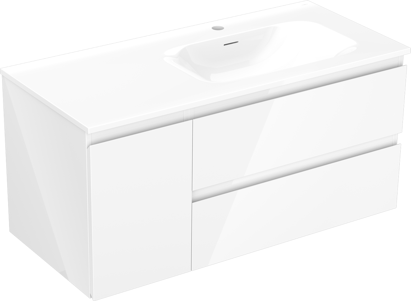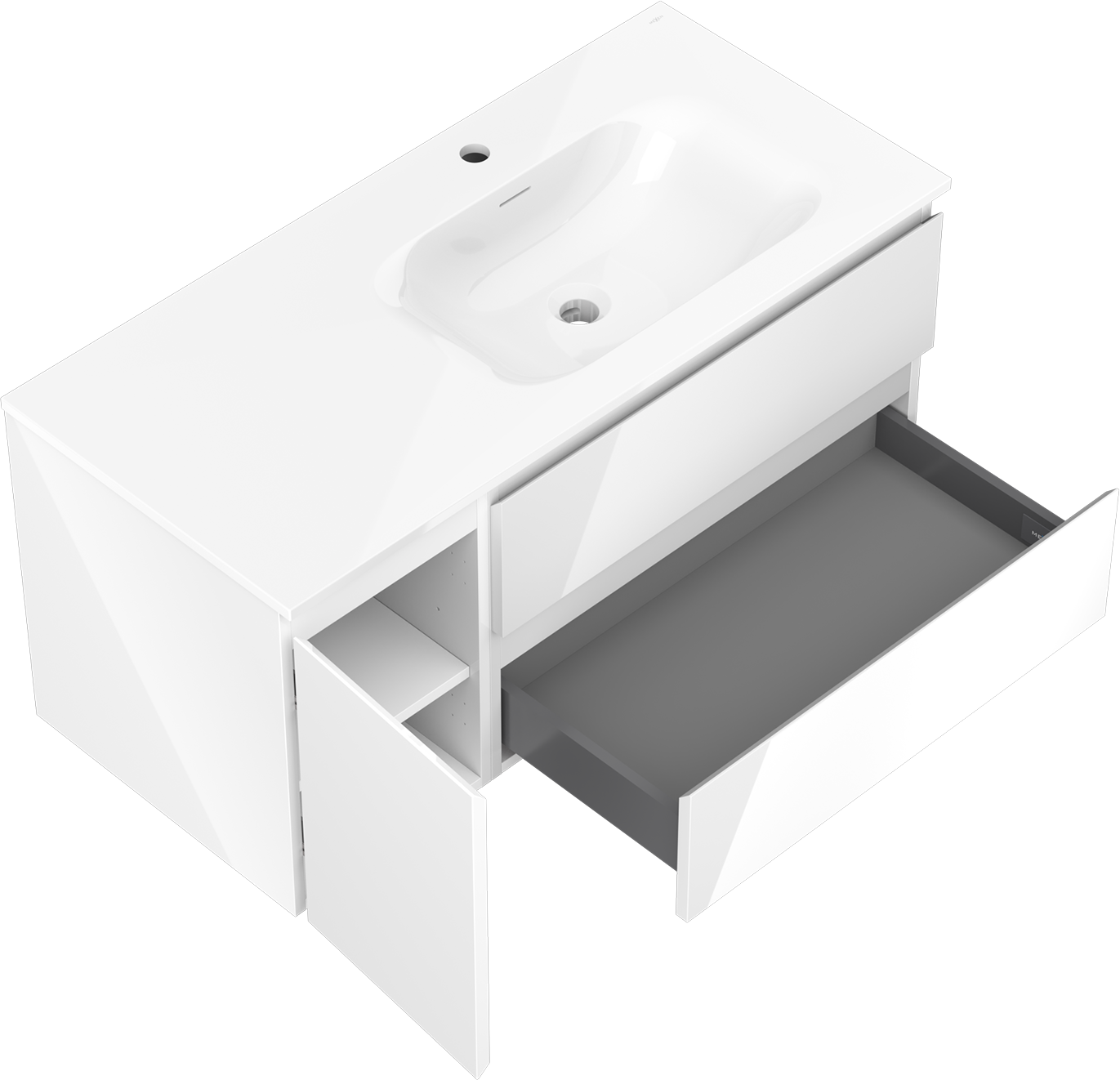 Mexen Orio kúpeľňová skrinka 100 cm s umývadlom Vela pravá, 2S, 1D, biela lesk - 91A13-10047-3-BBFFF00-W23P00