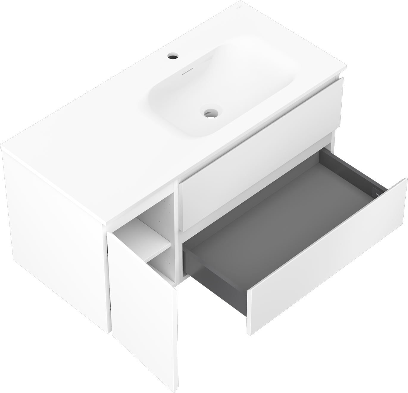 Mexen Orio kúpeľňová skrinka 100 cm s umývadlom Vela pravá, 2S, 1D, biela matná - 91A13-10047-3-BBFFFF01-W23P01