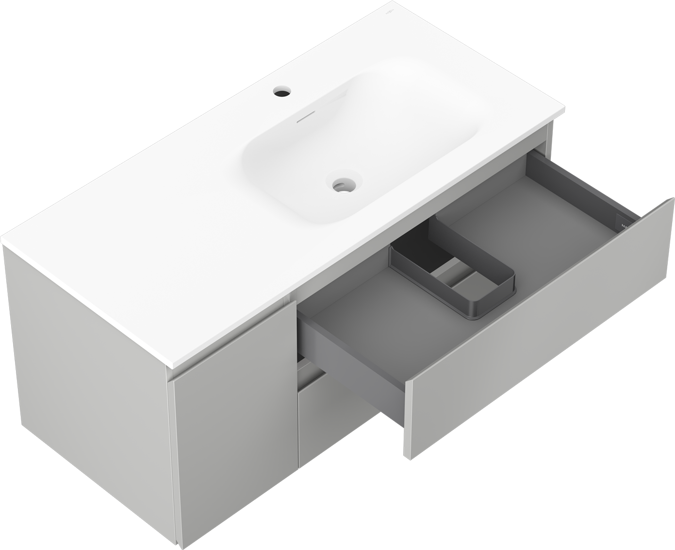 Výrez v zásuvke je navrhnutý tak, aby pojal sifón, ktorý je nevyhnutný v umývadlových inštaláciách. Vďaka tomu môže byť nábytok namontovaný plne funkčne, bez nutnosti vzdávať sa priestoru v zásuvke v prospech inštalácie.