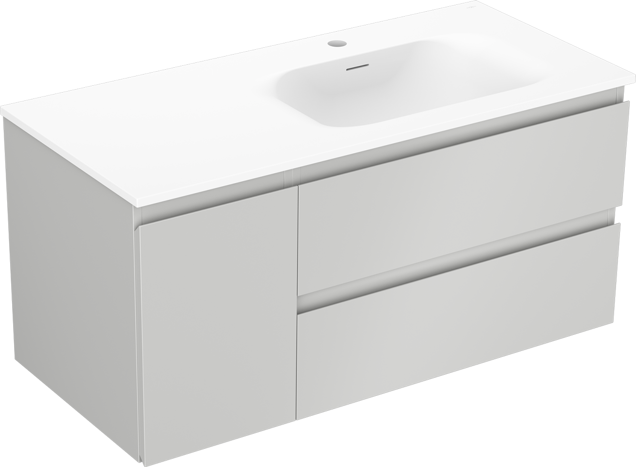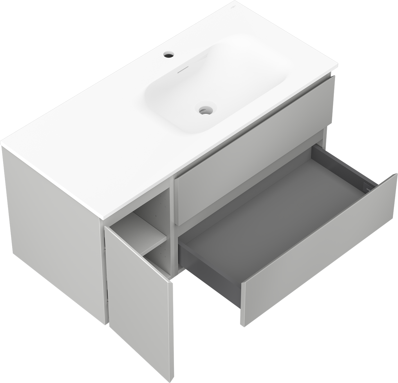 Mexen Orio kúpeľňová skrinka 100 cm s umývadlom Vela pravé, 2S, 1D, šedá matná/biela matná