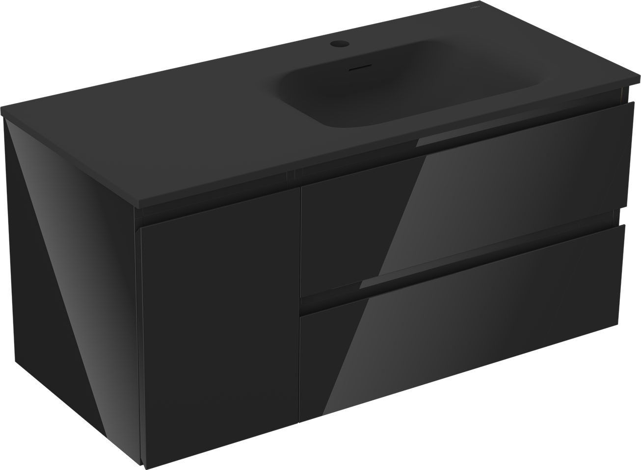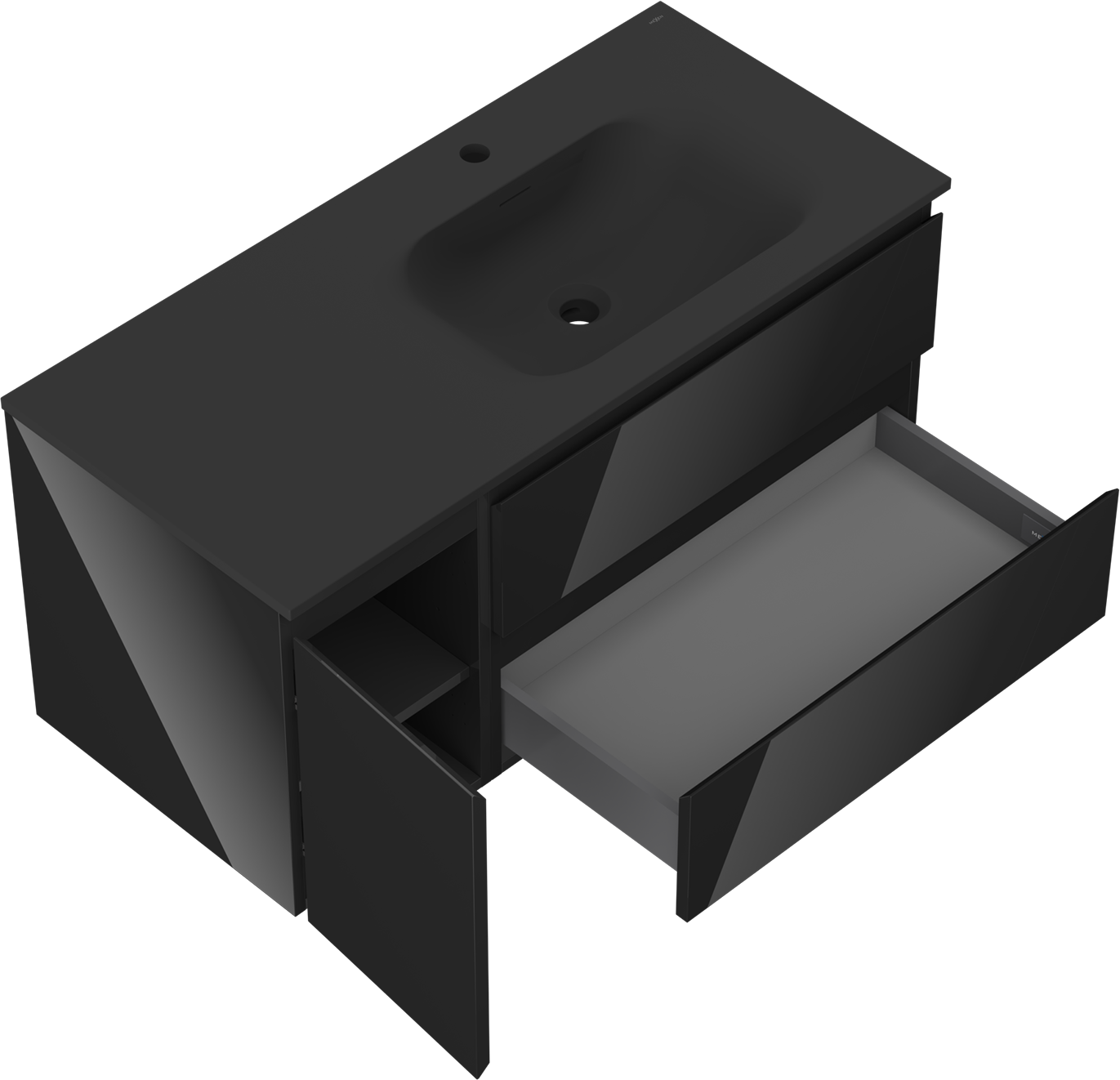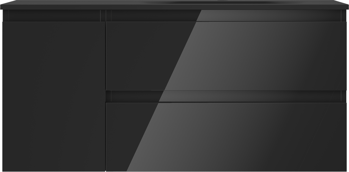 Mexen Orio kúpeľňová skrinka 100 cm s umývadlom Vela pravá, 2S, 1D, čierna lesklá/čierna matná