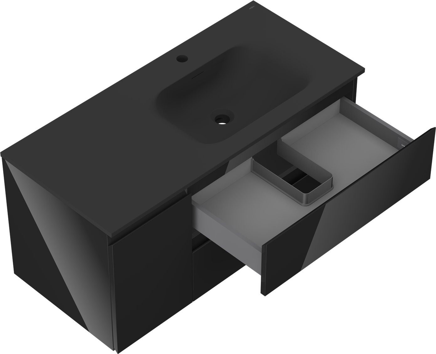 Výrez v zásuvke je navrhnutý tak, aby pojal sifón, ktorý je nevyhnutný v umývadlových inštaláciách. Vďaka tomu môže byť nábytok namontovaný plne funkčne, bez nutnosti vzdávať sa priestoru v zásuvke v prospech inštalácie.