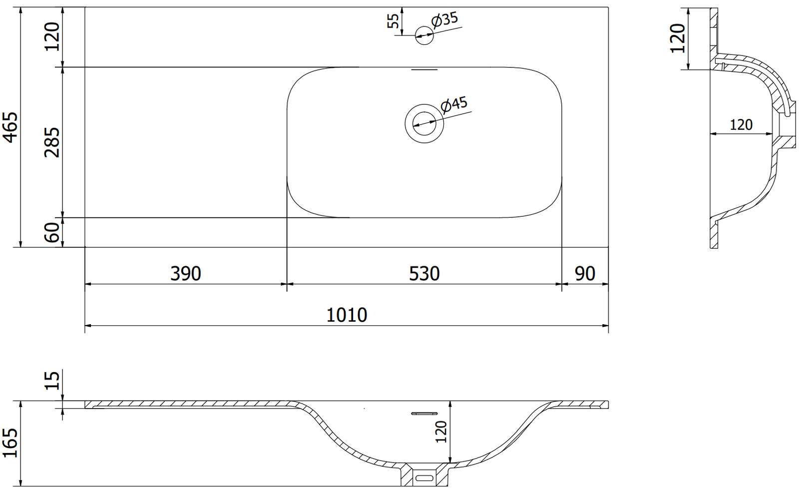 Prepadový otvor sa nazýva "bezpečnostný otvor". Cez neho odchádza prebytočná voda, vďaka čomu sa voda nedostane cez okraj produktu, keď je dolný odtok uzavretý. Je to veľmi bezpečné a praktické riešenie.